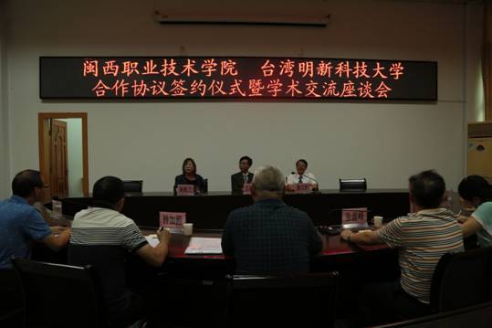 仪式上,明新科技大学两岸教育与交流中心主任杨秋兰介绍了该校的基本情况、与龙岩学院开展的合作项目内容。校长来永宝介绍了MG冰球的基本情况,强调了校校合作的重要性,希望双方能在教师及学生的培养、技能的提高、学历的提升等方面建立更加紧密的校校合作关系,实现优势互补、互利互惠,共创双赢局面。会议还就两校的合作和交流,IEET专业论证进行了探讨。