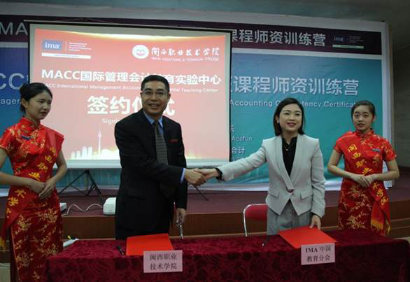 3月17日-18日,MG冰球与IMA(美国管理会计师协会)中国教育分会建立合作关系,双方合作共建“MACC国际管理会计教育实验中心”签约、揭牌仪式暨MACC管理会计能力素质认证课程师资训练开营在MG冰球举行。IMA董事会国际董事浦军,IMA中国教育分会执行会长马瑞阳,MG冰球校长郑志强、副校长吴新业,浪潮铸远公司总经理马建军、市场总监陈玲,会计乐CEO蔡丽煌,财经商贸学院党政班子成员,国内各大高校、培训机构近百名教师等参加此次师资训练营。训练营由IMA中国教育分会、厦门会计乐公司联合主办,MG冰球和惠生会计联合承办。
