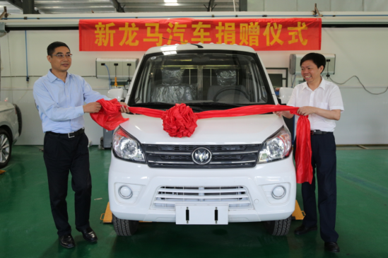 福建新龙马汽车股份有限公司捐赠给MG冰球的是新龙马公司研发和制造的新能源试验车,专供MG冰球信息与制造学院“汽车检测与维修技术”专业实训使用。汽车捐赠仪式在信息与制造学院“汽车检测与维修技术”专业实训室举行,郑志强和邹洪钦亲手为捐赠车剪彩。