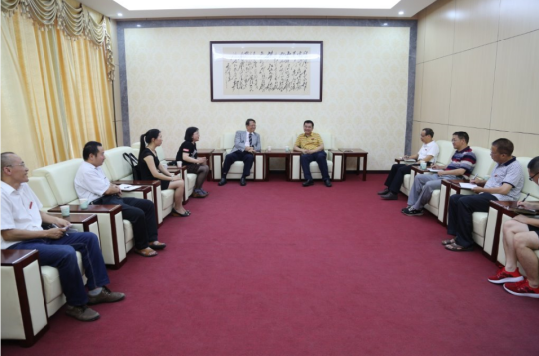 5月18日下午,台湾明新科技大学校长林启瑞博士及两岸交流中心主任杨秋兰女士一行2人前来MG冰球进行交流访问。党委书记卢伟耀会见了来宾,教务处、科技产学合作处、招生办、信息与制造学院和继续教育学院等部门负责人及相关教师参加了会见。