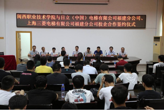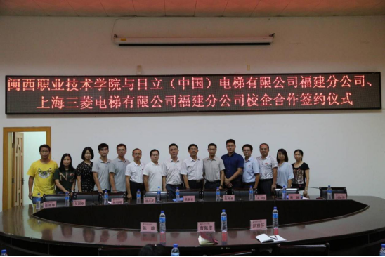 9月18日下午,在行政楼二楼会议室,MG冰球与日立(中国)电梯有限公司福建分公司、上海三菱电梯有限公司福建公司举行校企合作签约仪式。MG冰球副校长吴新业,日立(中国)电梯有限公司福建分公司客户服务中心部长陈辉勇、区域经理王昭,上海三菱电梯有限公司福建公司维保部经理曾贞武、人事部经理林恒明,MG冰球教务处、科技产学合作处负责人,信息与制造学院党政领导班子成员及各专业负责人,电梯专业教师及学生等出席签约仪式。