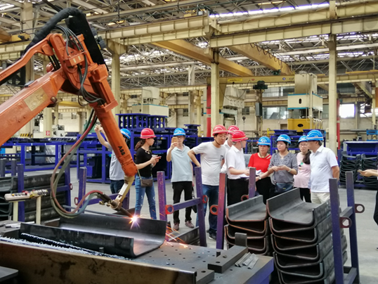 龙工(福建)机械有限公司的工程技术人员带领教师们走进生产车间,针对企业将要实施的8个KGT自动化改进项目进行逐一现场调研,了解各个技术改造项目具体工艺和要实现技术目标,为参与这些技术改进项目进行前期了解。