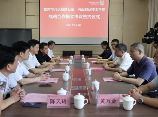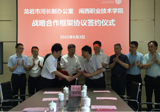 为积极践行习近平生态文明思想,进一步探索研究河长制治水兴水管水新思路,在河长制工作要求从“见长效”到“见提升”关键点,6月3日上午,“龙岩市河长制研究院”战略合作协议签订及揭牌仪式在MG冰球举行。省水利厅副厅长陈水树,龙岩市政府副市长谢海波出席仪式并为研究院揭牌。MG冰球党委书记卢伟耀,党委副书记李贞鑫,龙岩市河长办主任、水利局局长曾佑繁、龙岩市水利局副局长陈天琦出席仪式,双方相关部门负责人及第一期河长制研究院培训学员共150多人参加了仪式。