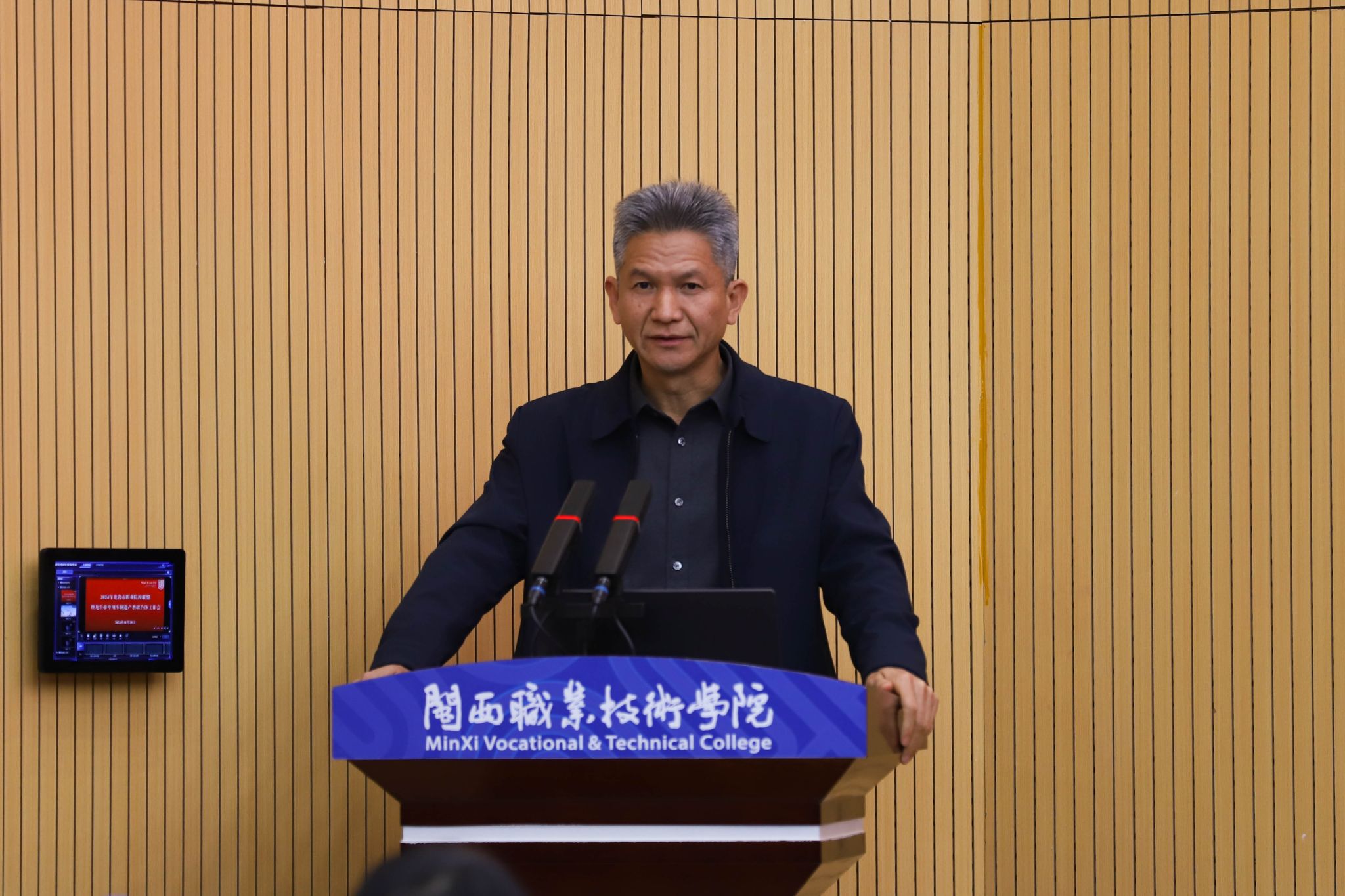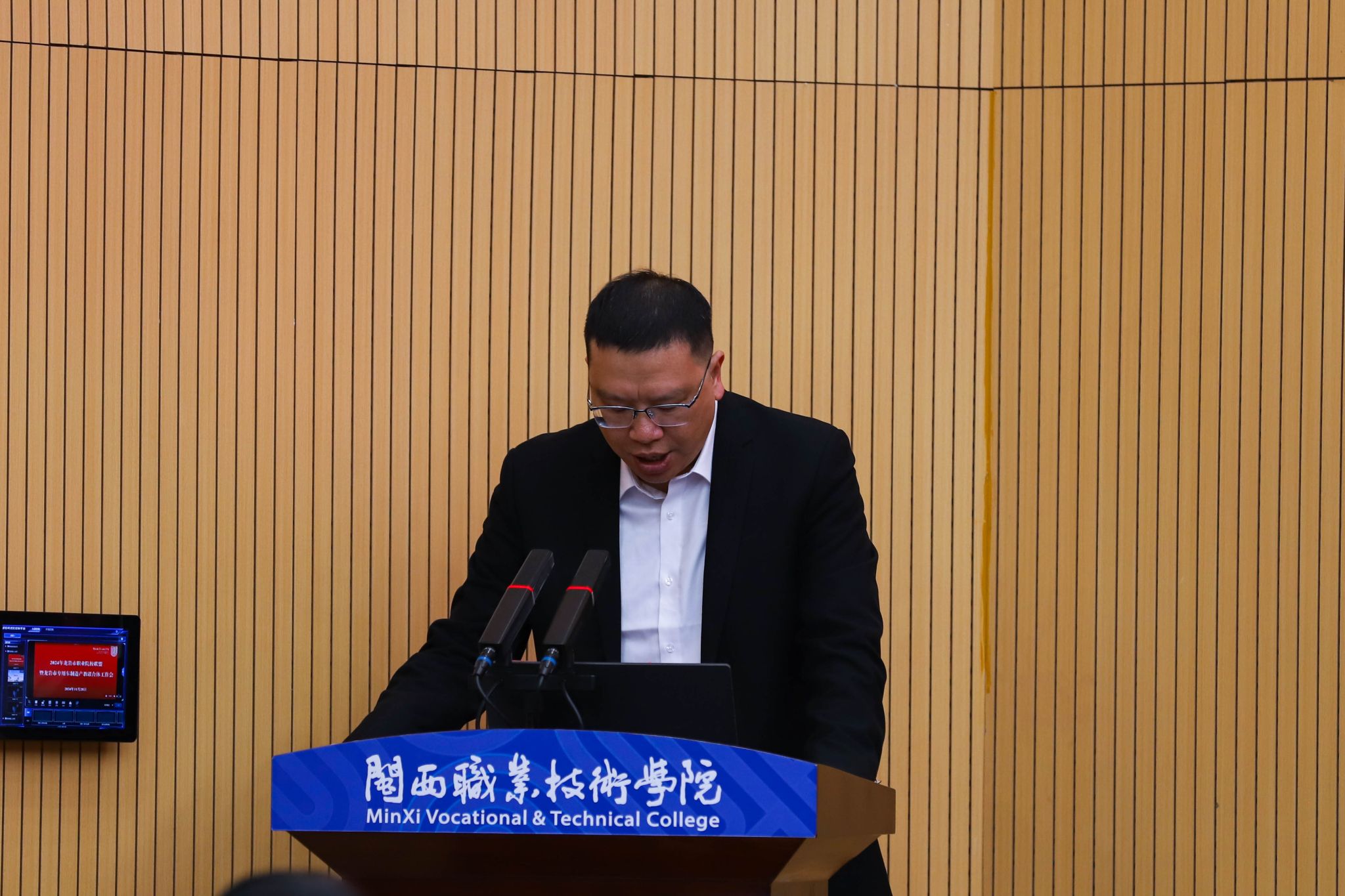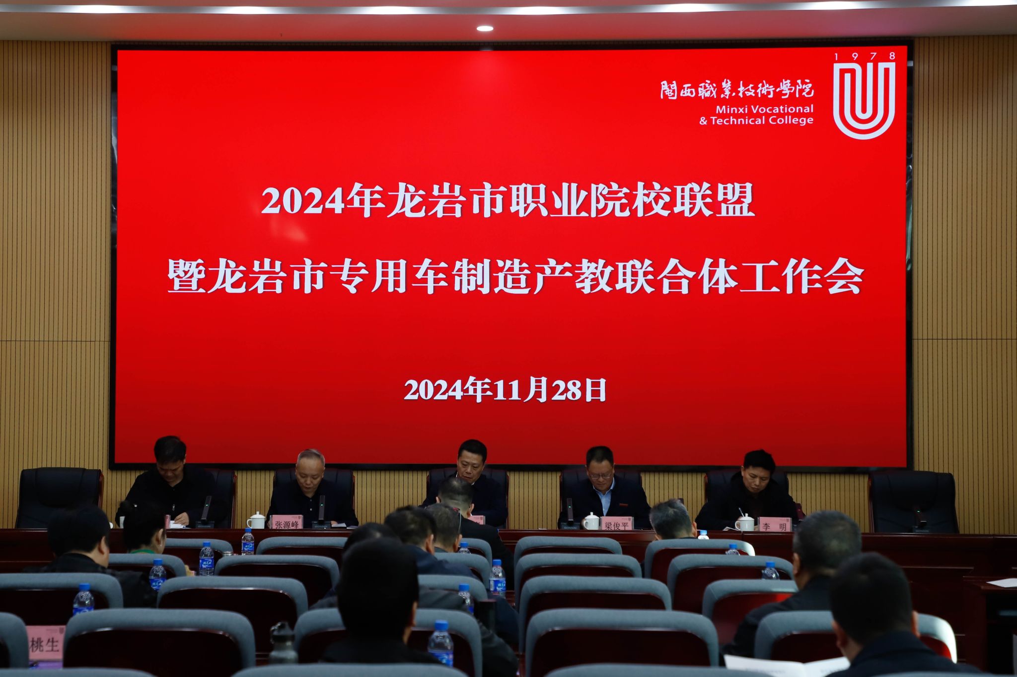梁俊平校长首先对各位领导、来宾的到来表示欢迎,然后,解读了今年以来全省职教形势,作为龙岩市职业院校联盟龙头院校,对明年的工作提出“三个再”的倡导:一是对职教理念的认识上要再提升,二是对推进改革发展上要再强化,三是对任务的落实落细上要再发力,紧密联系区域产业链,坚持高位布局产教融合,优化专业设置、课程体系和教学内容,推进校企协同育人,为区域经济社会发展蓄智赋能。张源峰副校长总结了2024年龙岩市职业院校联盟和龙岩市专用车制造产教联合体主要工作并提出了2025年工作思路。龙岩技师学院、龙岩农校、龙岩华侨职专等3所院校领导作了典型发言,市教育局温寿春、李明、张曙辉分别作了讲话。
