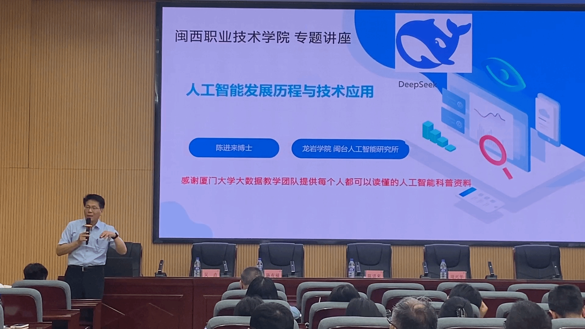 陈进来博士结合自身丰富的科研经验与行业洞察,深入浅出地介绍了人工智能的发展历程、核心技术以及在各领域的广泛应用。从机器学习、深度学习到自然语言处理,从智能医疗、智慧交通到智能制造,博士用通俗易懂的语言和大量翔实的案例,将复杂的人工智能技术娓娓道来,让师生们对人工智能的概念与应用有了更清晰、更全面的认识。