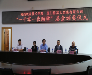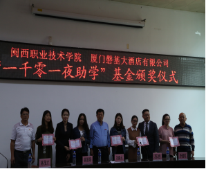 为了进一步加强酒店与学院的联系,更好扩大社会影响力,提高酒店知名度,帮助困难学生,从2017年起,厦门磐基皇冠假日酒店设立了“一千零一夜”奖助学金活动,此项活动持续三年,每半年评审表彰一次。通过“房款一日捐”慈善助学,“爱心房”售卖等活动,所得慈善款项全部纳入“一千零一夜”奖助学基金,用于奖励酒店管理、旅游管理、空中乘务等专业的家庭经济困难学生,鼓励他们自强不息,勤奋学习,感恩社会。