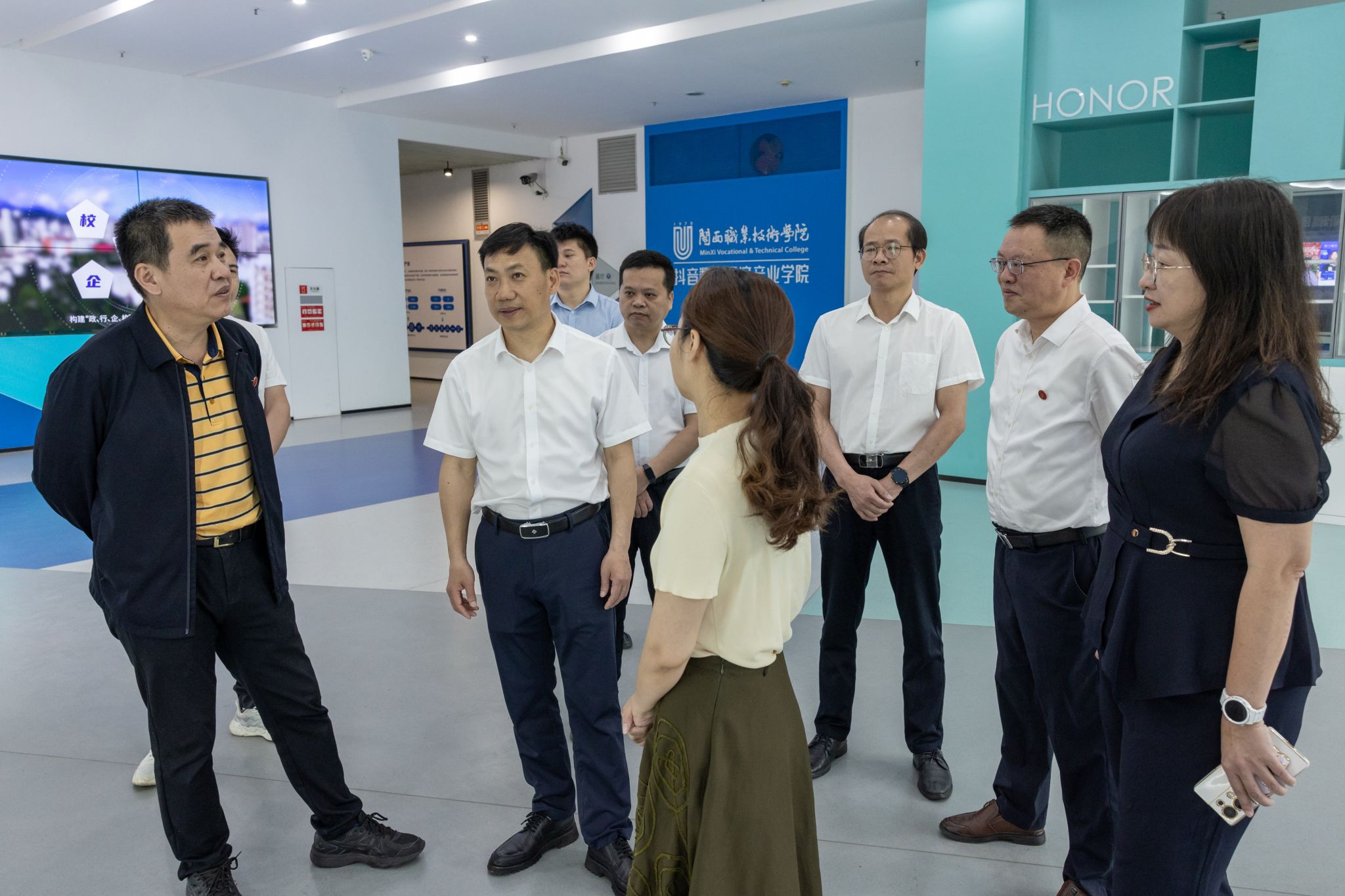 陈荣水一行在MG冰球党委书记卢伟耀、校长梁俊平的陪同下先后调研了抖音数字产业学院、“龙标”大学生双创孵化基地、学生心理健康教育中心等,详细了解MG冰球产教融合、学生创业就业及心理健康教育等工作情况。在随后召开的座谈会上,陈荣水充分肯定了学校近几年的发展,特别是能紧紧围绕龙岩“2+4”重点产业调整专业设置,并逐步形成了服务龙岩发展的特色专业群,为闽西经济发展提供坚实的人才支撑。他强调,要持续紧贴我市主导产业需求,加强校地、校企等多方联动,着力培养更多技术技能型人才,为闽西革命老区高质量发展示范区建设作出新的更大贡献。