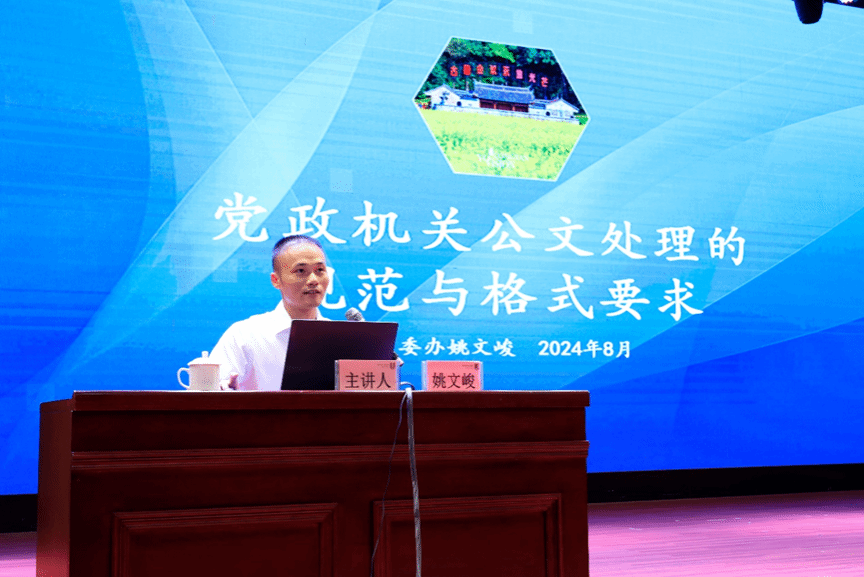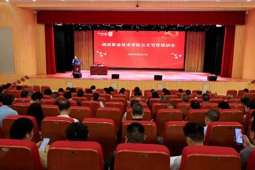 8月27日下午,MG冰球在大匠堂举办了公文写作培训会。全体中层干部,行政、教辅人员,二级学院秘书岗教职工参加了培训,培训会邀请龙岩市委办公室秘书科姚文峻科长主讲。卢兆梅副校长主持培训会。