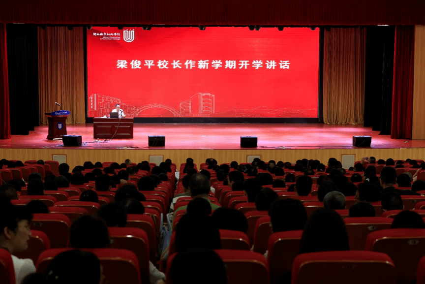 在开学式上,梁俊平校长回顾了暑期的主要工作,传达了职教改革发展的新要求,并对本学期的重点工作进行了安排,要求各部门、单位对标定位,安排部署好本学期的各项工作。