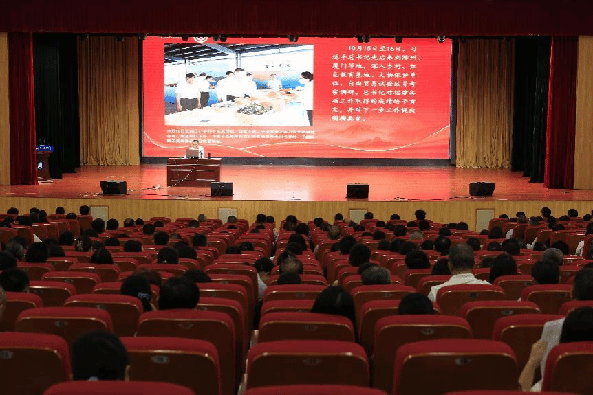 为深入学习贯彻习近平总书记在福建考察时的重要讲话精神,11月5日,MG冰球在大匠堂召开教职工大会,校党委书记卢伟耀专题宣讲习近平总书记在福建考察时的重要讲话精神,全体教职员工参加大会,会议由副校长张源峰主持。