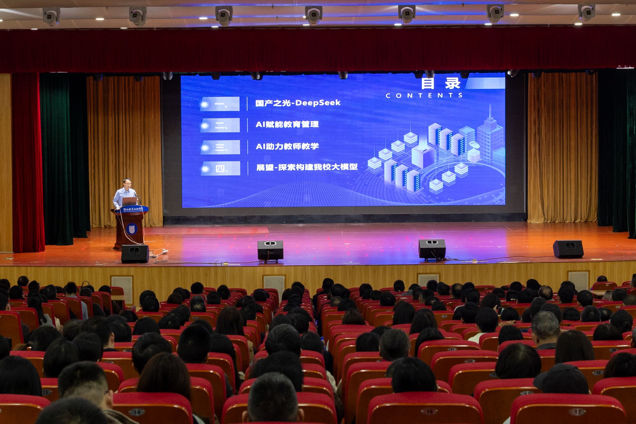 随后,学校信息工程学院计算机应用技术专业负责人郭金文老师带来了《AI赋能教育,智绘闽大未来》的DeepSeek使用分享。郭老师以专业的视角,系统阐述了DeepSeek大模型在教育管理和教师教学实践中的应用探索,并对借助其优势构建闽大大模型的可行性进行了深入剖析。这一分享让教师们对人工智能在教育领域的深度应用有了更为清晰的理解,为教学创新注入了新的活力。