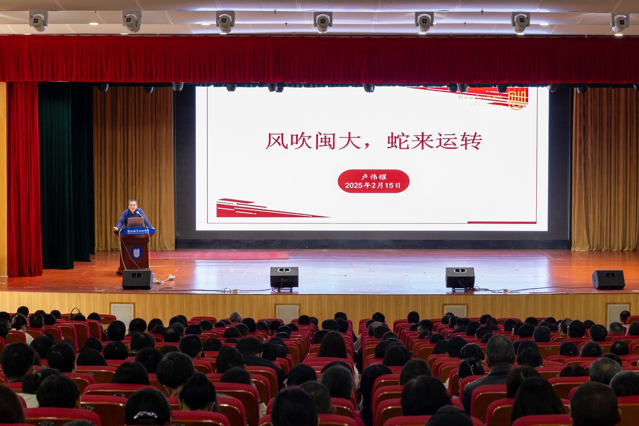 最后,卢伟耀书记以 “风吹闽大,蛇来运转” 的生动表述发表动员讲话。他直面当下社会普遍存在的焦虑情绪,指出学习是破局的关键。卢书记鼓励教师们积极学习新思想,以新思想引领教育新征程;掌握新技能,与时代同频共振,用新技能赋能教育革新;研究新政策,以新政策为指引,制定个人发展规划。同时,他着重强调全体教职员工要严守师德底线,履职尽责,以实干精神营造风清气正的校园政治生态,确保学校稳步前行、行稳致远。