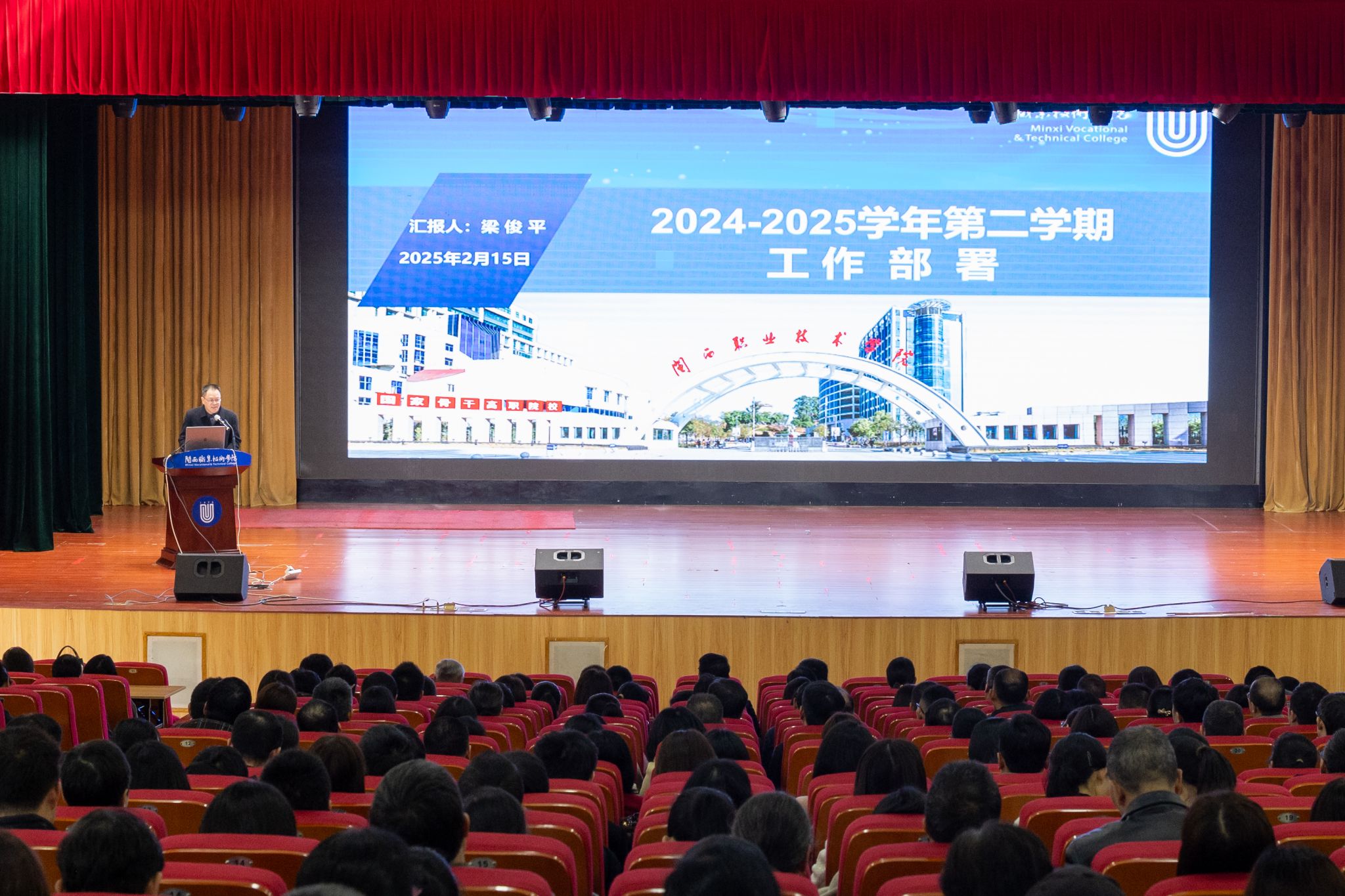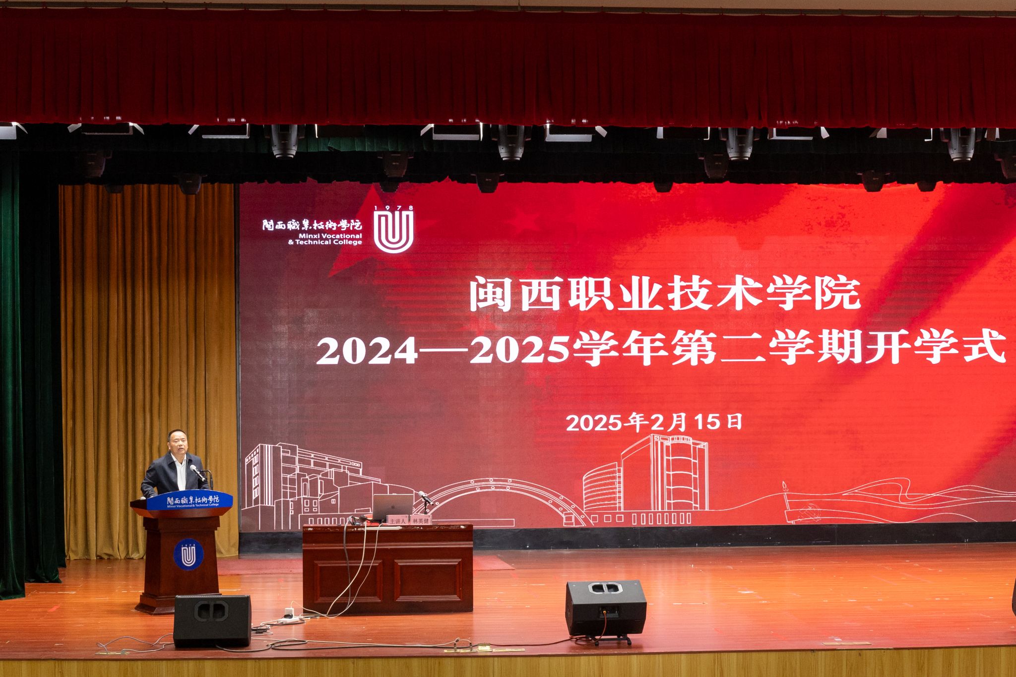 2 月 15 日上午,全体校领导与全校教职员工齐聚大匠堂,隆重举行 2024 - 2025 学年第二学期开学式,共同开启新学期的奋斗征程。开学式由校党委副书记林伟能主持。