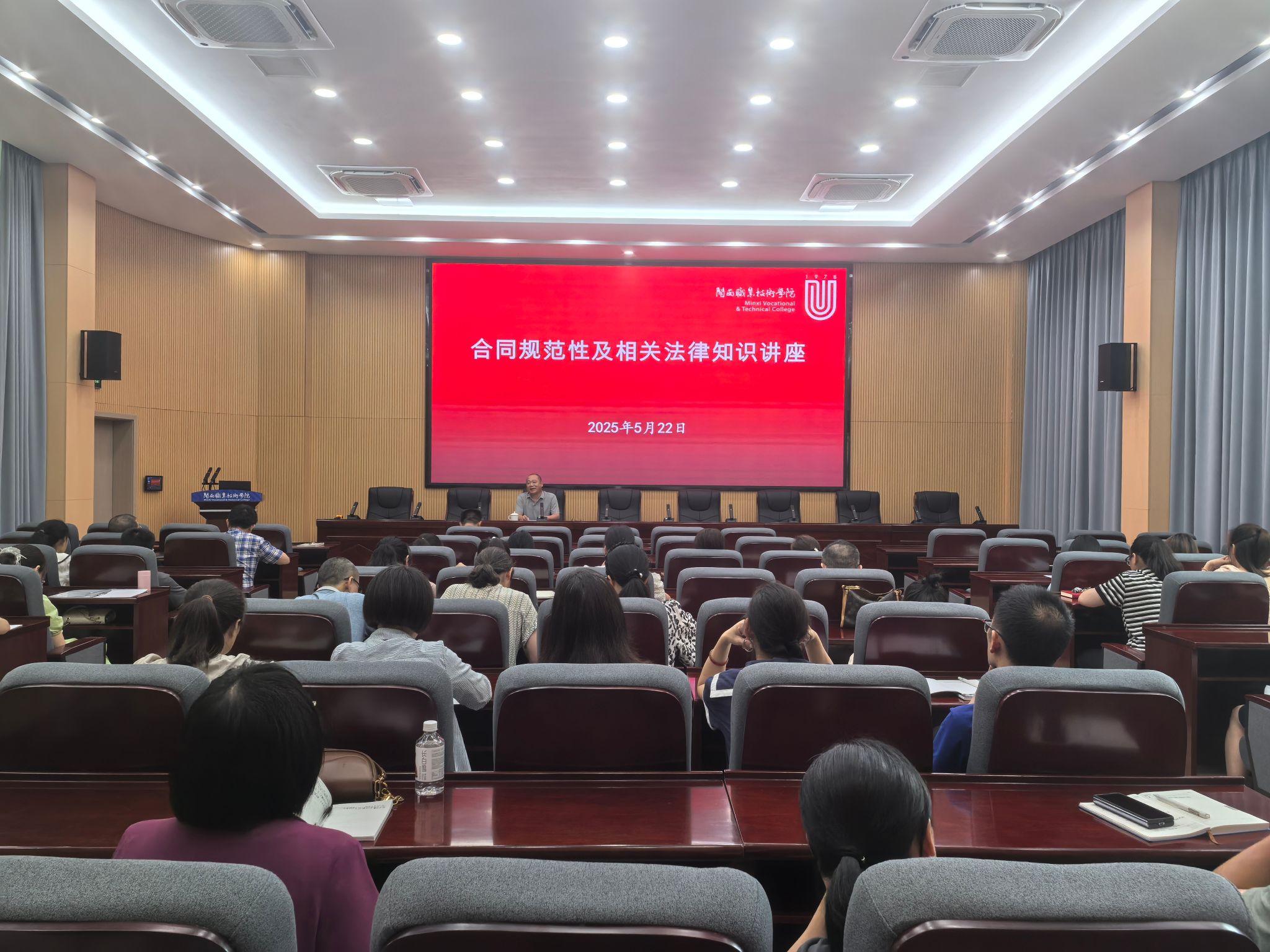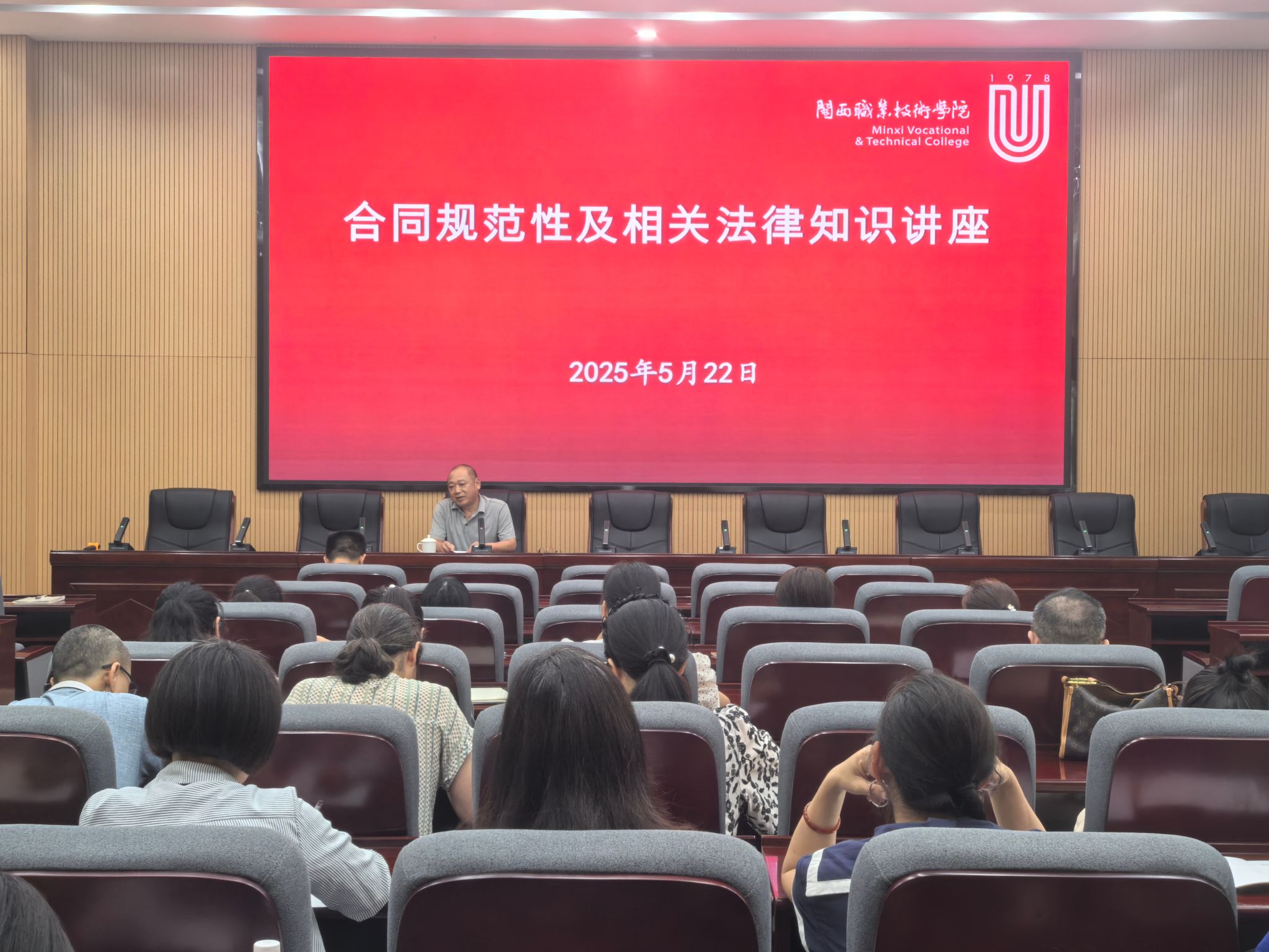 为进一步规范合同管理,强化学校合同经办人员的法律风险防范意识,5 月 22 日下午,由党政办牵头举办了合同规范性及相关法律知识的专题讲座。本次活动由福建同荣仁律师事务所律师卢欣昌、卢啟顺主讲,各部门、单位的合同经办人员参与了此次培训。