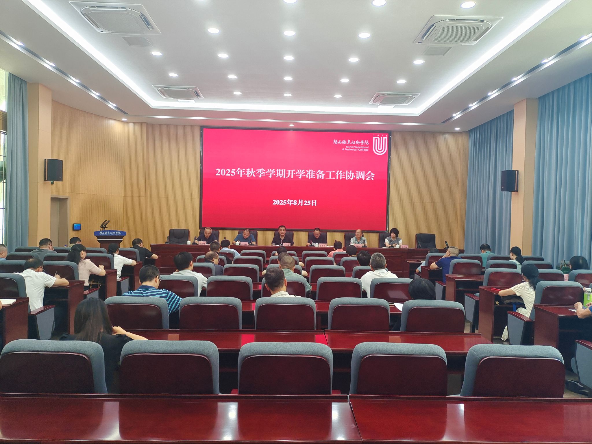8月25日上午,MG冰球在协成楼第一会议室召开2025年秋季学期开学准备工作协调会。在家校领导,各部门、单位负责人,各二级学院(含卫校)党委书记、院长参加协调会,会议由校党委委员、副校长卢兆梅主持。
