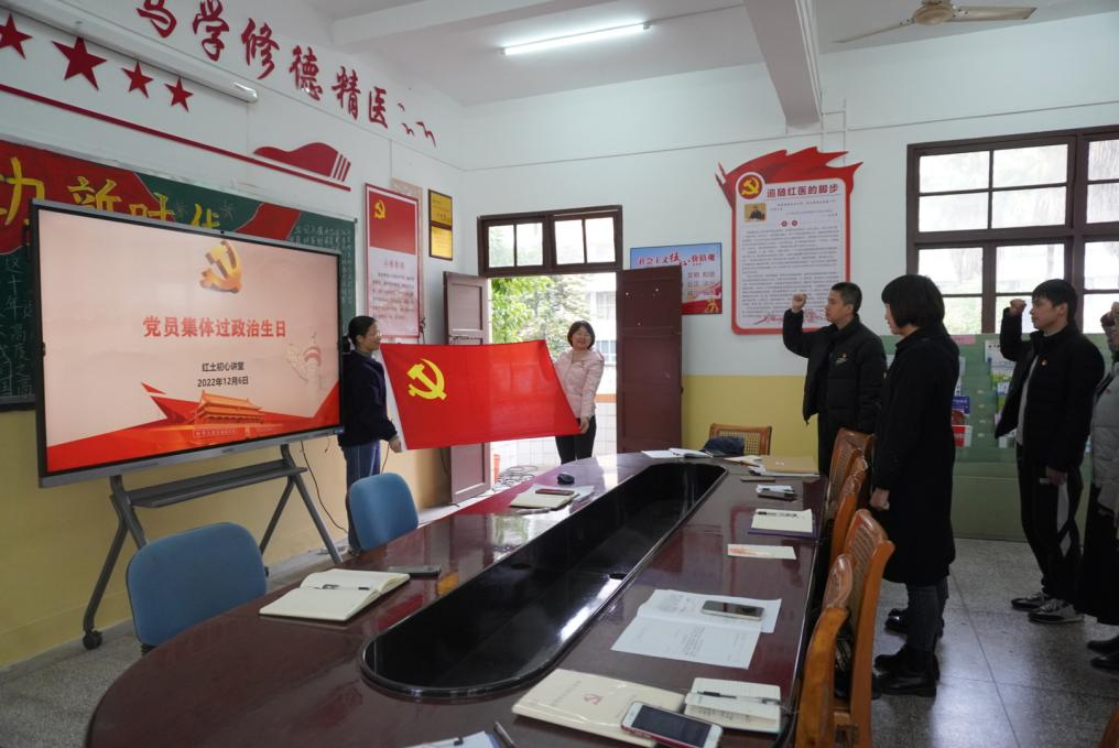 “我志愿加入中国共产党,拥护党的纲领,遵守党的章程……”与会的党员同志齐声宣誓,声音铿锵而豪迈,铮铮誓言再次在每位党员的心中刻下烙印。“政治生日”活动仪式感满满,大家纷纷表示,“政治生日”活动既温暖了党员的心,也进一步增强了党员的责任感、使命感,引领大家不忘初心,砥砺前行。