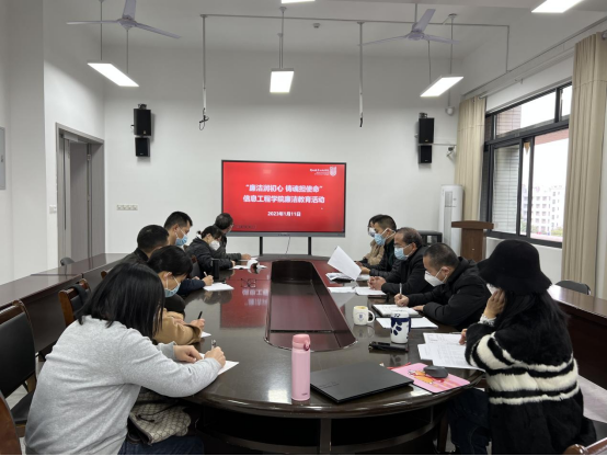 2023年1月11日,为深入学习贯彻党的二十大精神,贯彻落实党中央《关于加强新时代廉洁文化建设的意见》等文件精神,信息工程学院开展“廉洁润初心 铸魂担使命”廉洁教育活动。