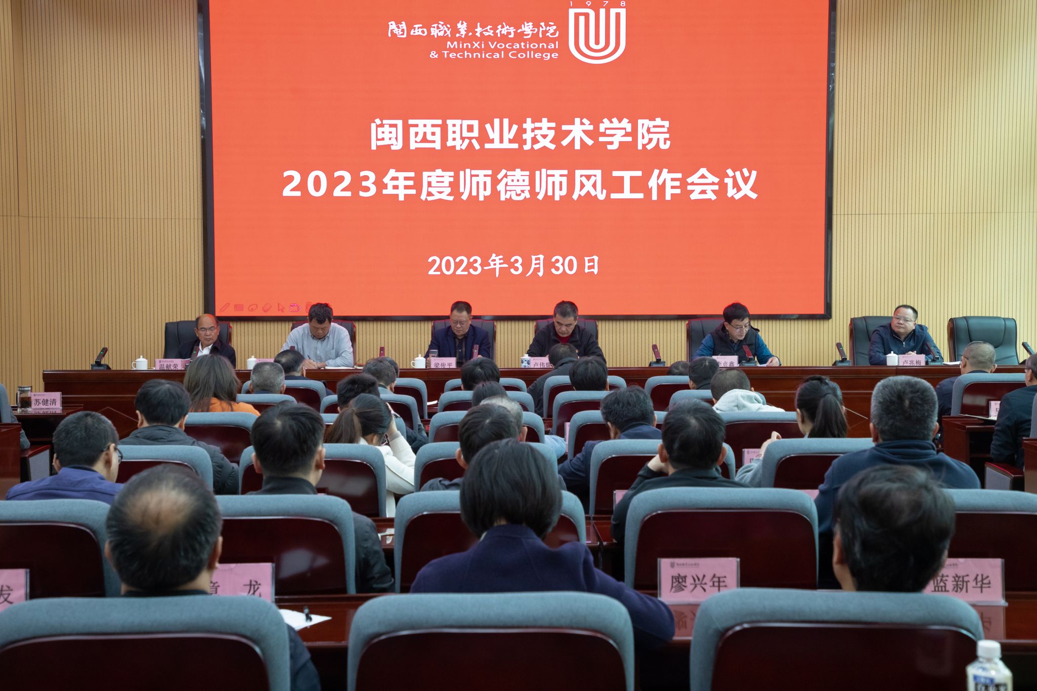 会议强调,做好2023年师德师风建设工作,一是要提高站位,把师德师风建设作为师资队伍建设的第一标准,作为提高教育教学质量的基础工程,把师德师风摆在“三教”改革、打造“予生最好学校”的首要位置,切实增强抓好师风师德建设的责任感和紧迫感,建立常态化、长效化师德师风建设工作机制,确保师德师风建设落到实处、取得实效;二是抓实教育,深入学习贯彻党的二十大精神,组织教职工学习习近平总书记关于师德师风的重要论述,充分利用闽西红色资源,引导教师赓续精神血脉、汲取奋进力量;三是树好典型,持续做好师德标兵评选工作,举办师德大讲堂,在官网、官微宣传师德先进典型,大力宣传“师德标兵”“最美教师”先进事迹,形成崇尚先进、见贤思齐的浓厚氛围;四是有效提升,把师德师风建设和教师职业能力提升有机结合、双向融汇,把师德师风建设全面融入“入职启航、结对护航、双元续航、团队同航、名师引航”等环节,促进教师全面提升师德素养和职业能力。