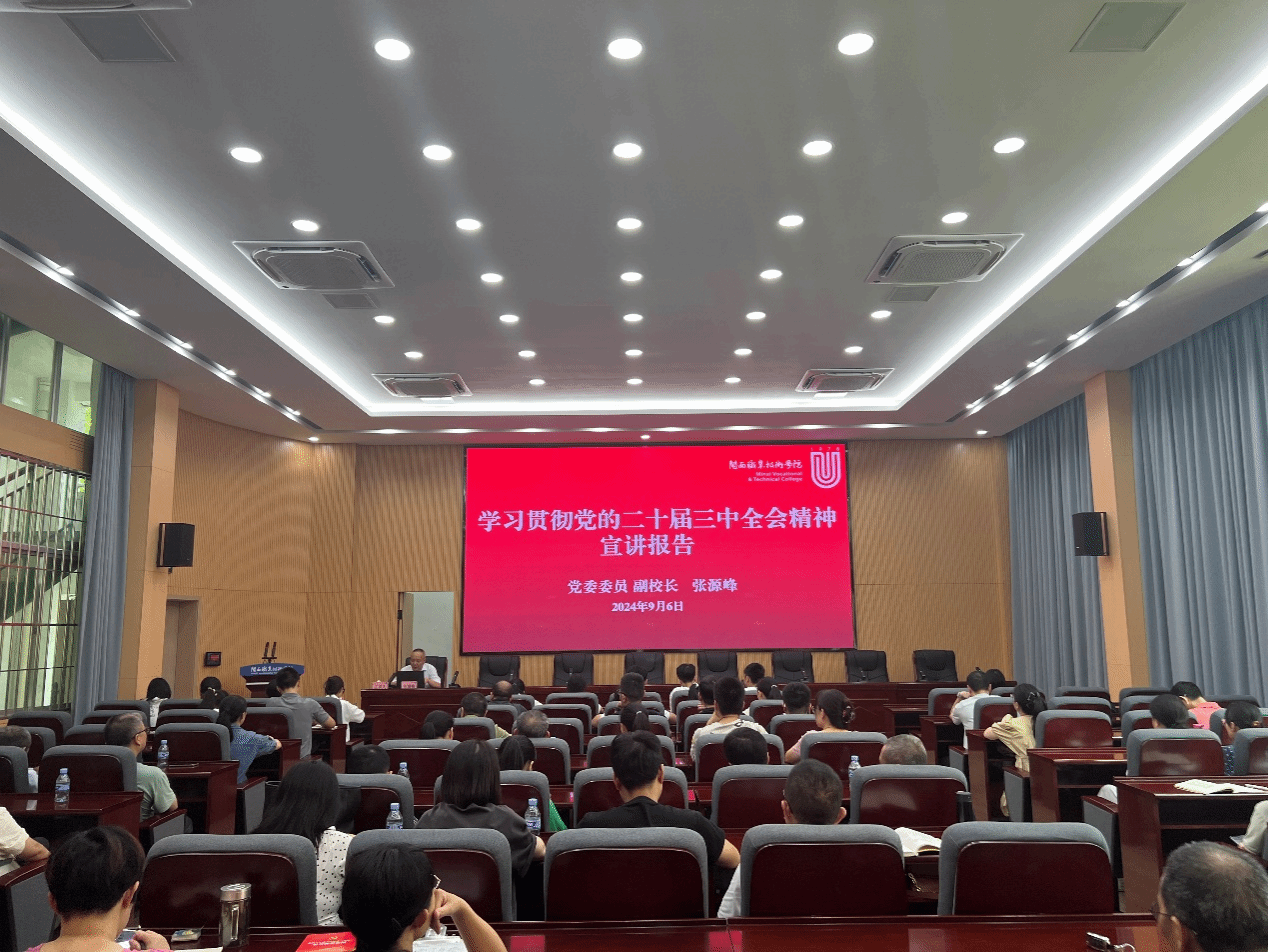 张源峰副校长深入浅出地解读了全会的重大意义、主题和重大成就,详细阐述了进一步全面深化改革的指导思想、总目标和重大原则,并重点介绍了《决定》提出的八项重大举措。他强调,学习好贯彻好全会精神是当前和今后一个时期的重大政治任务,全院师生要立足实际,解放思想,扎实做好各项工作,推动全会精神在学校落地生根。此次宣讲活动,对于全院师生深刻理解和把握党的二十届三中全会精神,推动学校高质量发展具有重要意义。