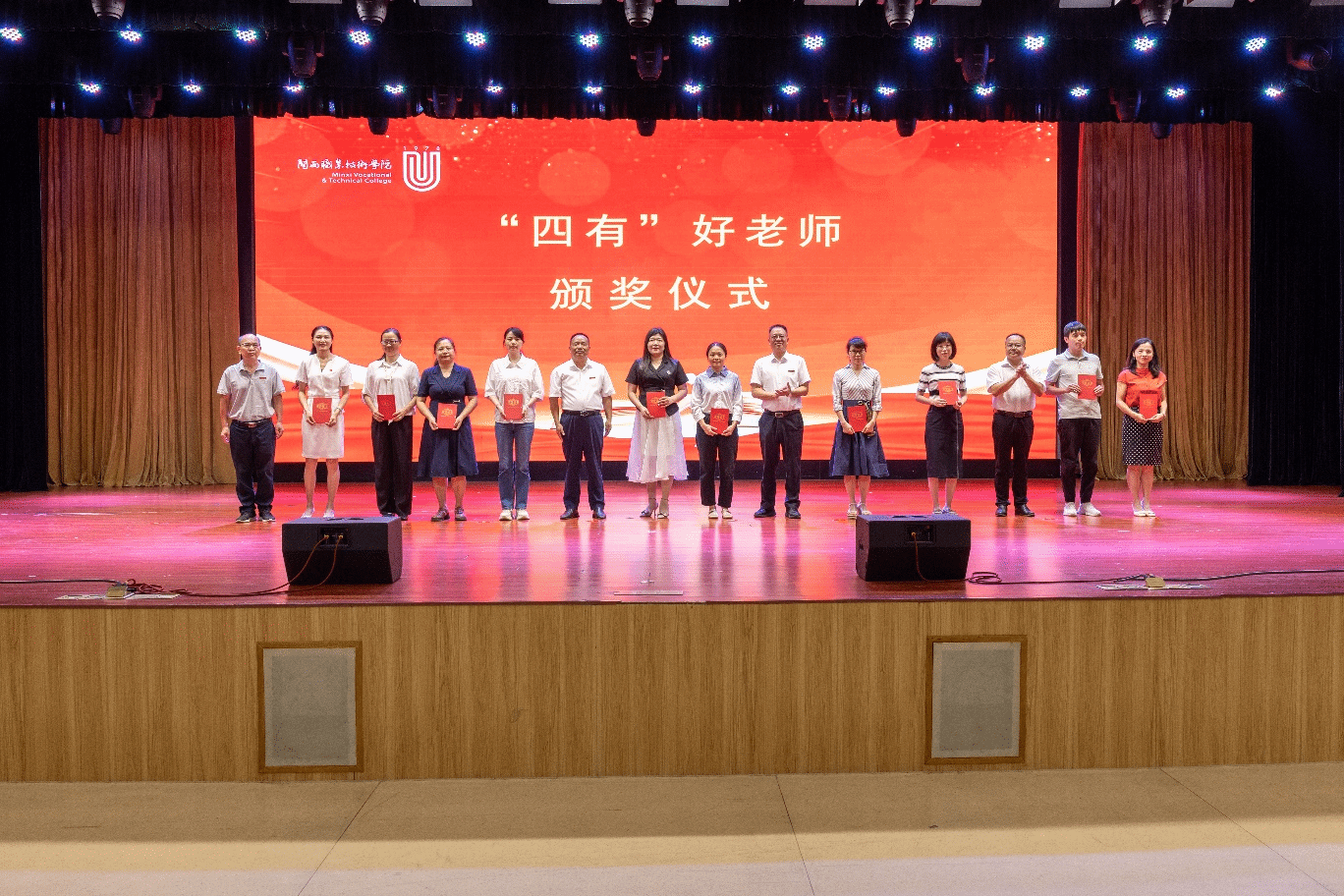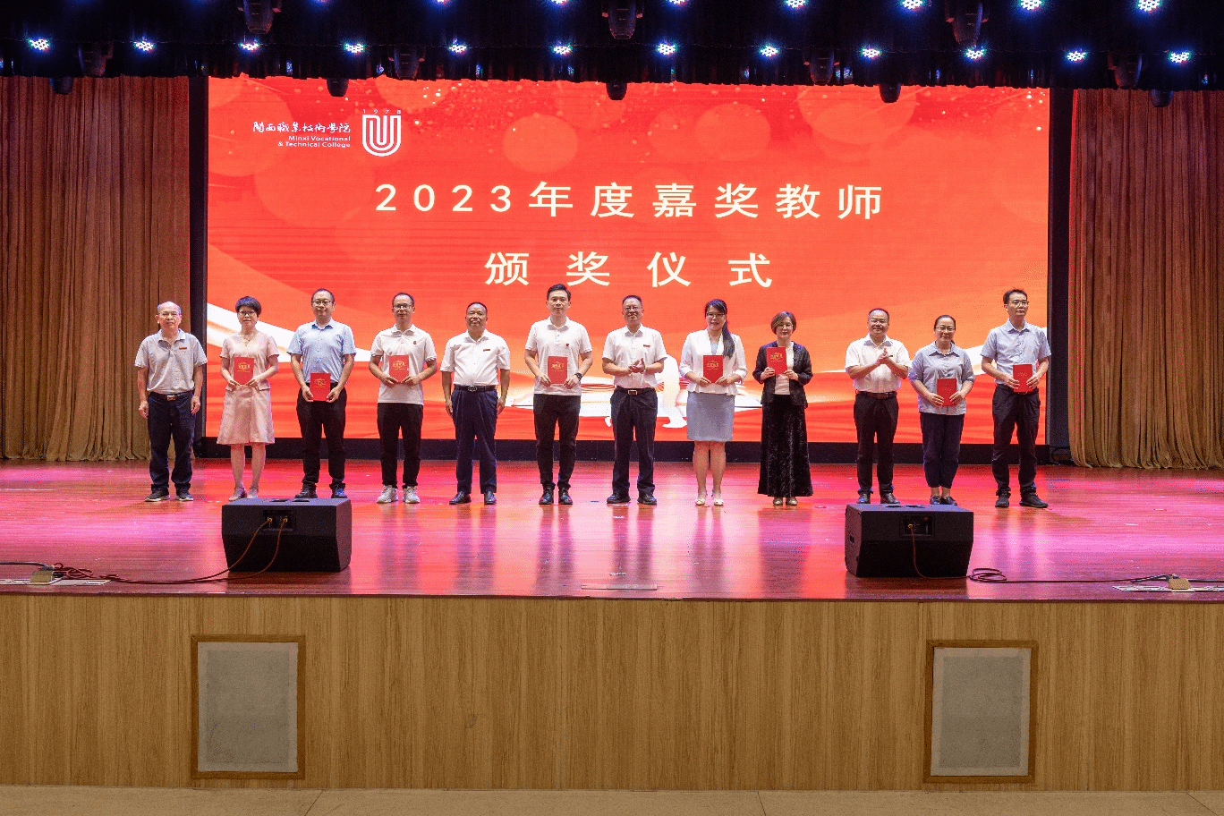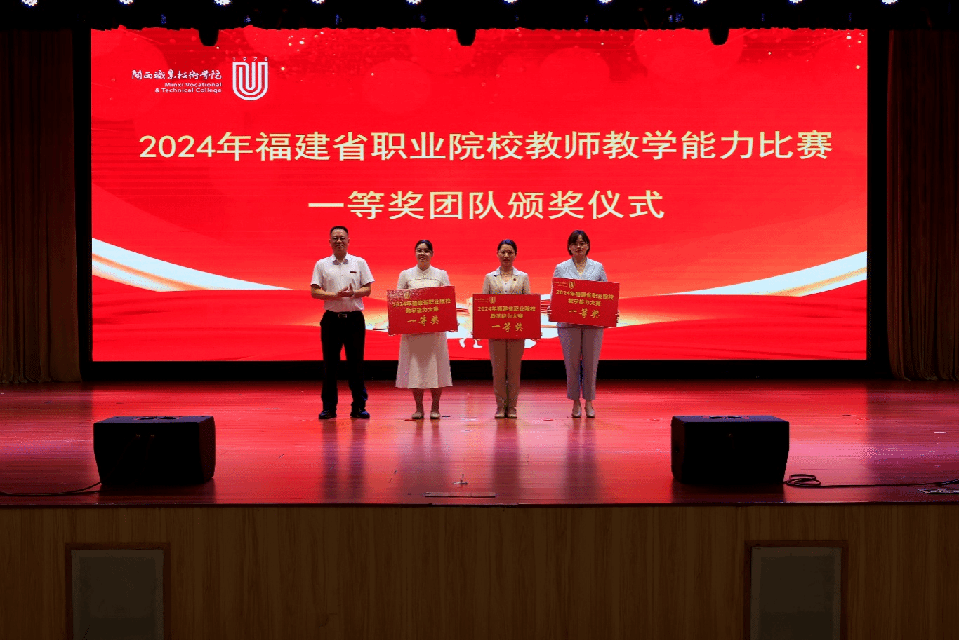 大会第二议程,卢兆梅副校长宣读了2024年福建省职业院校教师教学能力比赛一等奖团队、2024年 “四有”好老师、2023年度嘉奖教师代表、2023年度优秀员工代表等受到表彰的教师名单并举行颁奖仪式,分别表彰了2024年福建省职业院校教师教学能力比赛一等奖团队、2024年 “四有”好老师、2023年度嘉奖教师代表、2023年度优秀员工代表。