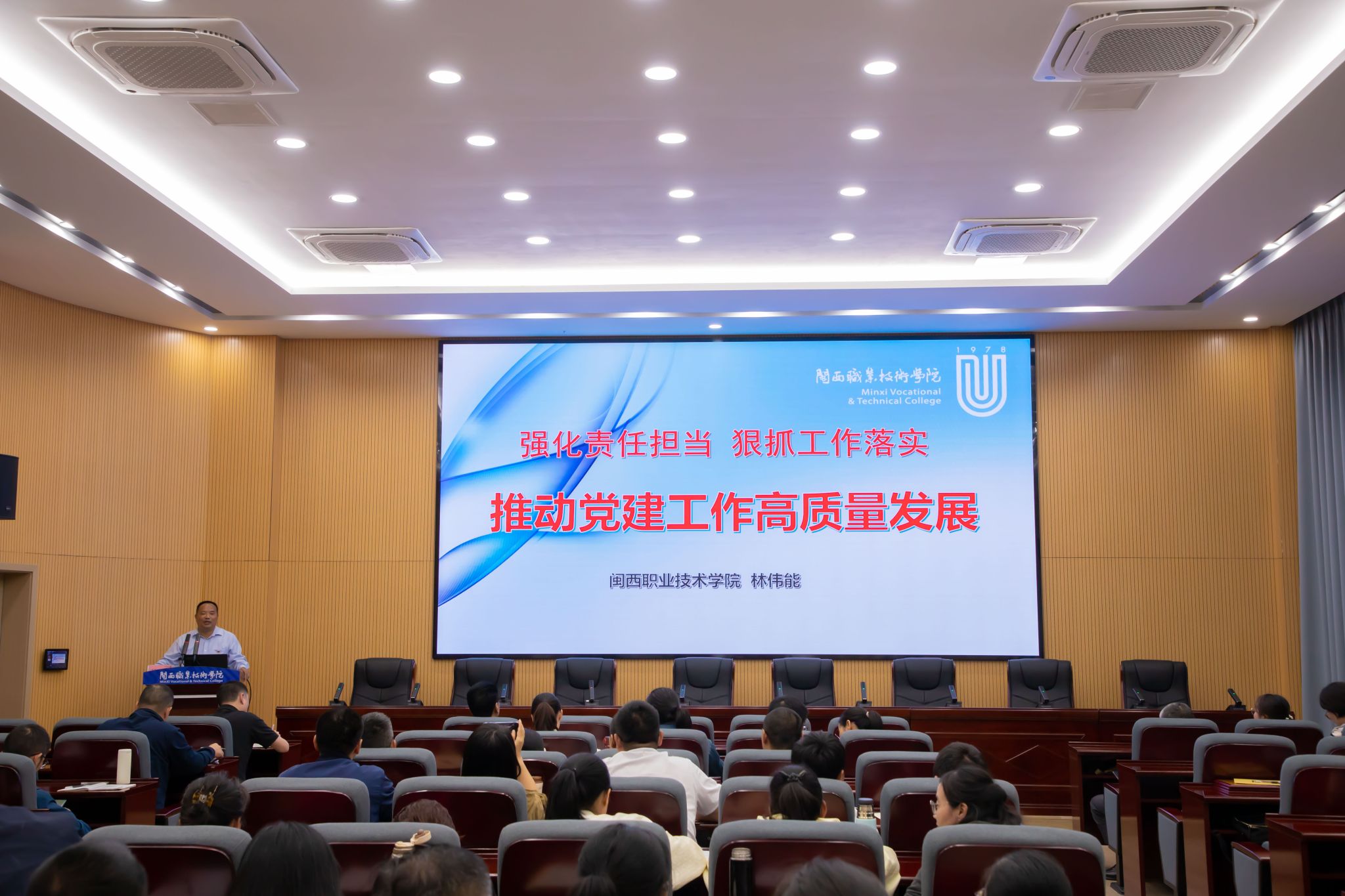 林伟能副书记作题为《强化责任担当,狠抓工作落实—推动党建工作高质量发展》报告,就如何提升党务干部业务能力,推动党建与业务深度融合,促进党建工作创新和品牌建设等方面指出了努力的方向。