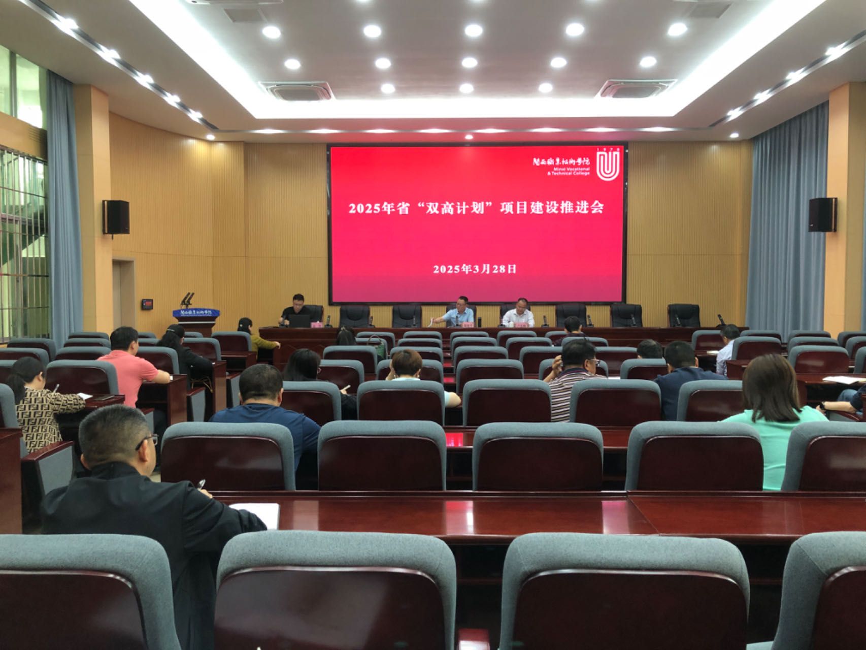 为全面推进MG冰球省级“双高计划”建设进程,高质量通过省级“双高计划”终期绩效评价工作,凝聚共识、明确方向,3月28日,MG冰球在协成楼二楼会议室召开2025年度省级“双高计划”项目建设推进会。校领导梁俊平、卢兆梅,各二级学院行政负责人、财务处负责人、项目一级指标负责人及联络员、双高办全体成员参加了会议。会议由双高办负责人汤亮同志主持。