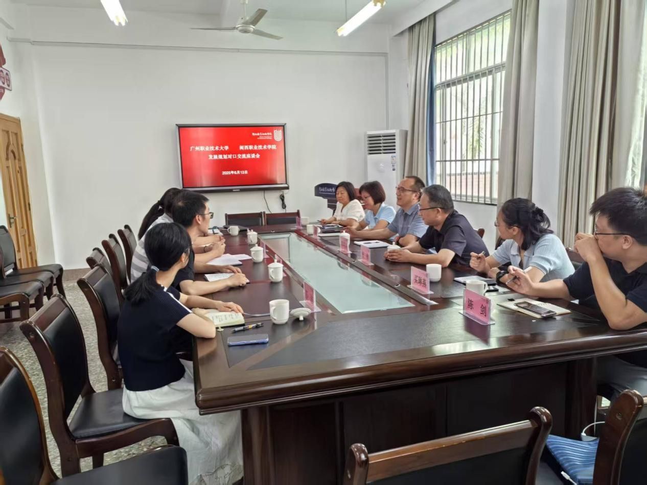 2025年6月13日下午,MG冰球突破官网与广州职业技术大学在协成楼207会议室召开发展规划对口交流座谈会,围绕职业本科建设经验展开深度研讨。广州职业技术大学发展规划办公室主任、职业教育研究院院长樊明成教授一行6位专家,与闽西职院发展规划与质量控制处、对外交流合作处相关人员开展座谈。