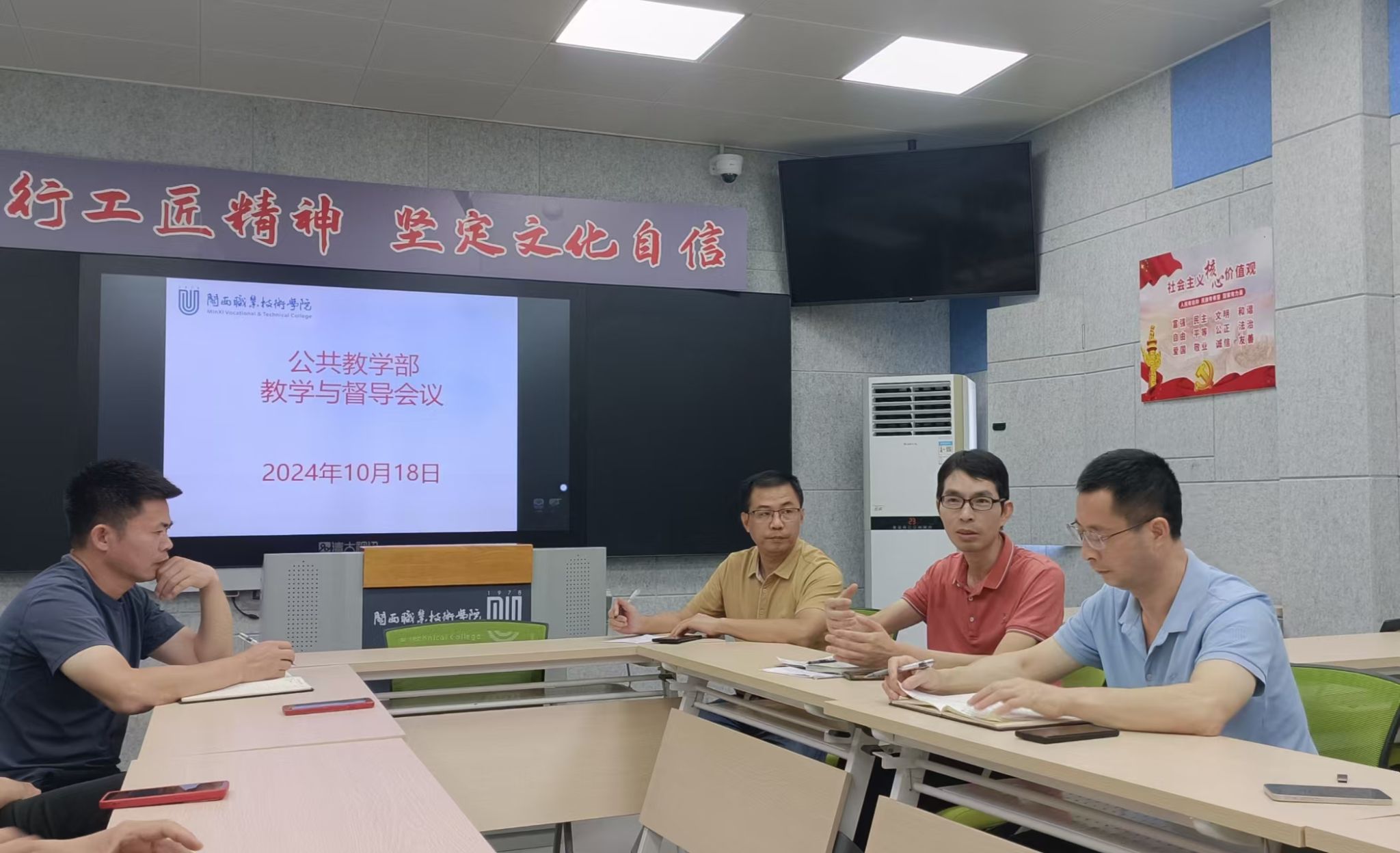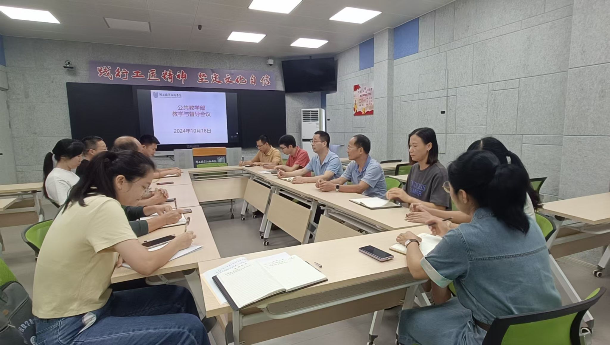为营造“四有”课堂,提高教学质量,打造“予生最好学校”,2024年10月18日,公共教学部在望云楼303智慧教室召开本学期督导与教学工作专题会议。会议由彭复生主任主持,教务处副处长陈开森教授应邀出席会议,公共教学部教学督导小组全体成员参加了会议。