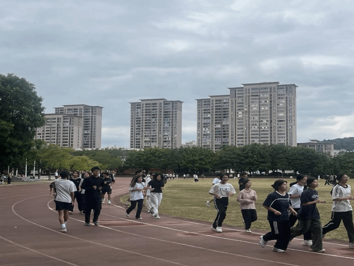 在科学合理的呼吸节奏上,老师们更是有妙招。依据自身扎实的专业知识,他们告诉学生可以尝试三步一呼、三步一吸或者两步一呼、两步一吸的节奏,根据自己的身体状况选择最适合的方式。在指导过程中,老师们培伴在学生左右,给予温暖有力的鼓励,为同学们的健身之路领航。他们充分考虑不同学生的身体条件和运动基础,为各班级学生量身定制训练计划,助力学生稳步提升跑步能力。一旦发现学生有错误动作,老师会立刻停下脚步,轻声呼唤学生,然后亲自示范正确要领,动作标准而流畅,帮助学生快速改进。