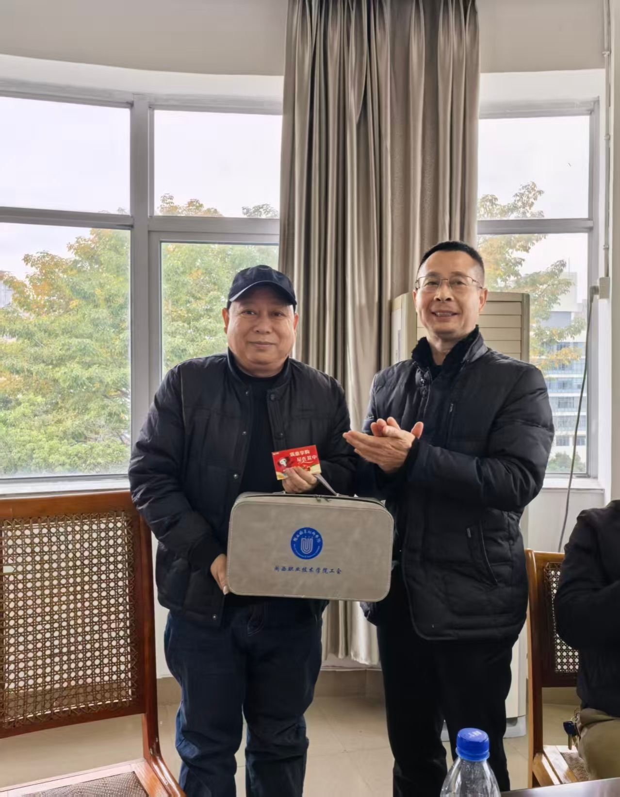 为深入贯彻落实《关于实行干部荣誉退休“六个一”制度的通知》文件精神,切实增强荣誉退休干部的归属感、荣誉感和幸福感。公共教学部举办邓斌凯老师的荣誉退休座谈会,会议由工会小组长曹素芳老师召集,彭复生主任主持,部务会成员及数学教研组教师们参加。