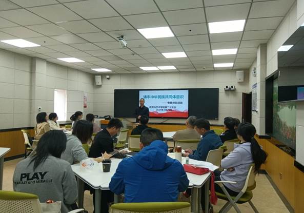 在活动中,支部书记彭复生为大家作了题为“铸牢中华民族共同体意识”的专题讲座。他强调中华民族有着悠久的历史和灿烂的文化,各民族之间紧密相连,共同缔造了中华民族的辉煌。在当今时代,铸牢中华民族共同体意识具有重要的战略意义:中华民族共同体意识强调各民族之间的团结和合作,有助于增强国家凝聚力和向心力,维护国家统一和安全;激发了全民族的创造力和创新精神,有助于促进经济发展和社会进步;弘扬了中华文化的优秀传统和价值观,有助于增强各民族对中华文化的自信和认同感。因此,我们需要深入把握中华民族共同体意识的丰富内涵,积极探索实践路径,为实现中华民族伟大复兴的中国梦贡献力量。