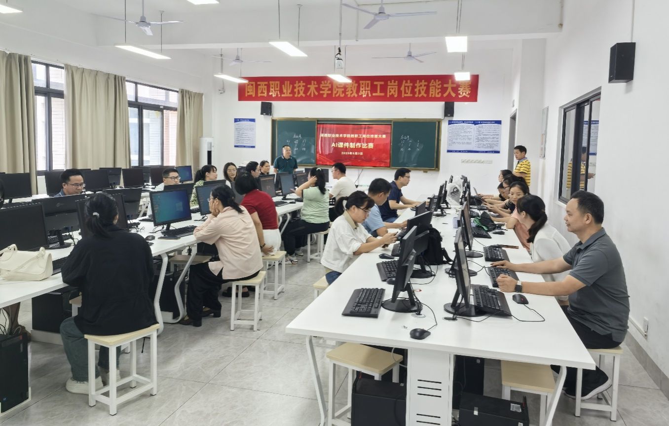 本次大赛以“以赛促教、以赛促创”为核心理念,吸引了来自全校12个工会小组的 29名教职工踊跃参赛。参赛教师在150分钟的限时挑战中,综合运用AI工具完成教学设计、课件制作、素材生成等全流程操作,开发出适用于45分钟课堂教学的完整资源体系。比赛现场气氛紧张而有序,教师们全神贯注地将AI技术与学科教学深度融合,有的运用智能算法生成动态教学模型,有的借助自然语言处理技术优化教案逻辑,充分展现了信息化教学时代教师队伍的专业素养与技术应用能力。