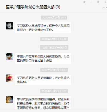 6月19日、6月24日和7月1日,分别组织党员在支部微信群通过收看视频的形式观看了“党旗飘扬 筑牢红色防火墙”高校党组织战“疫”示范微党课活动。