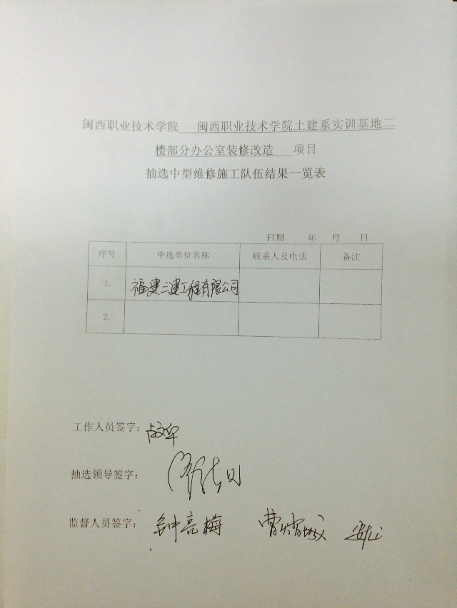 公示:学院土建系实训基地二楼部分办公室装修改造工程中标队伍