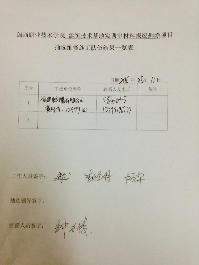 公示:建筑技术基地实训室材料报废拆除项目中标队伍