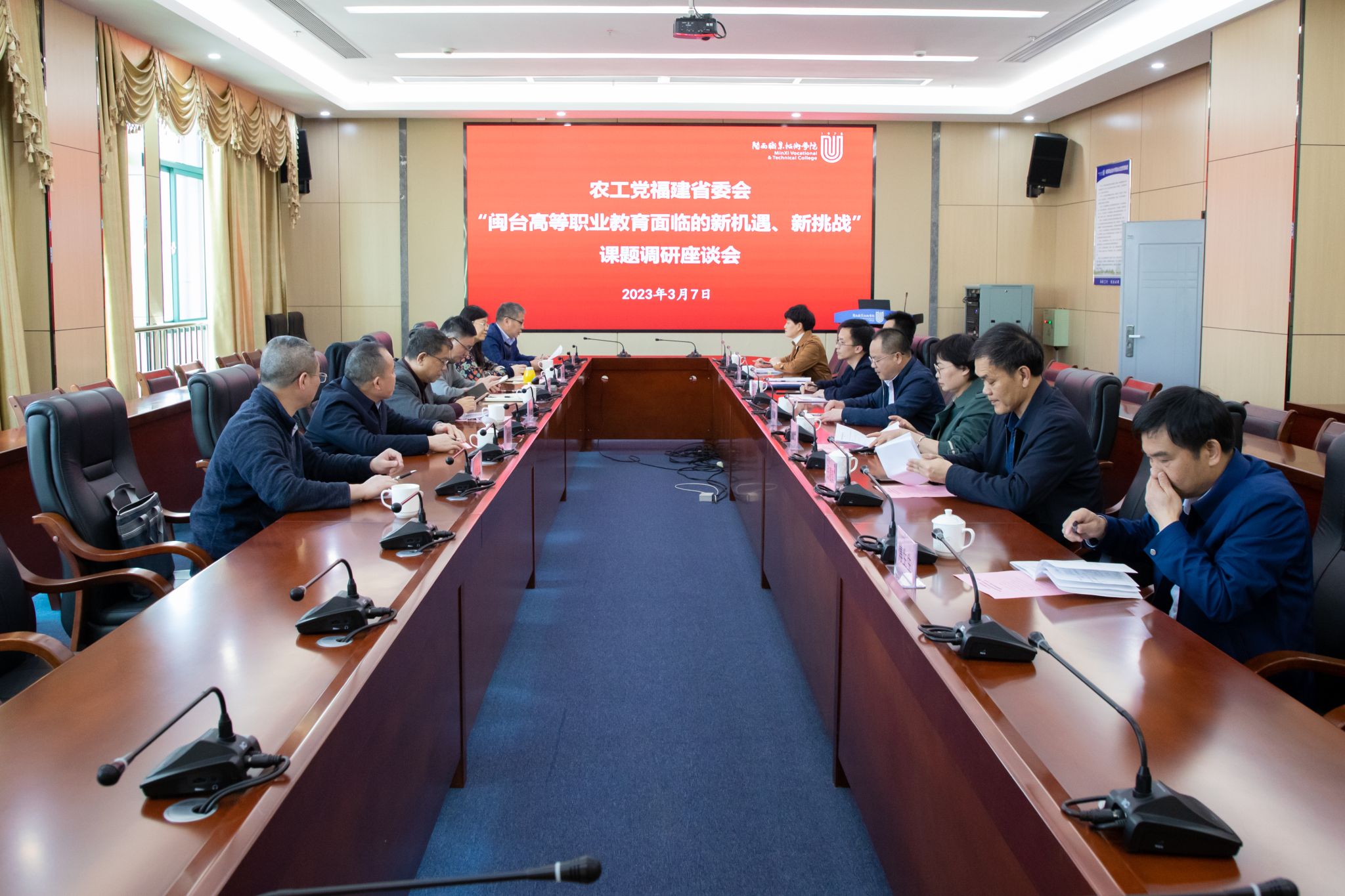 3月7日下午,省政协常委、副秘书长、农工党福建省委会专职副主委杨琳一行到MG冰球开展“闽台高等职业教育融合面临的新机遇、新挑战”课题调研。龙岩市委台港澳办、市教育局、市人社局、市文旅局、农工党龙岩市委会等部门领导,MG冰球卢兆梅副校长参与调研。