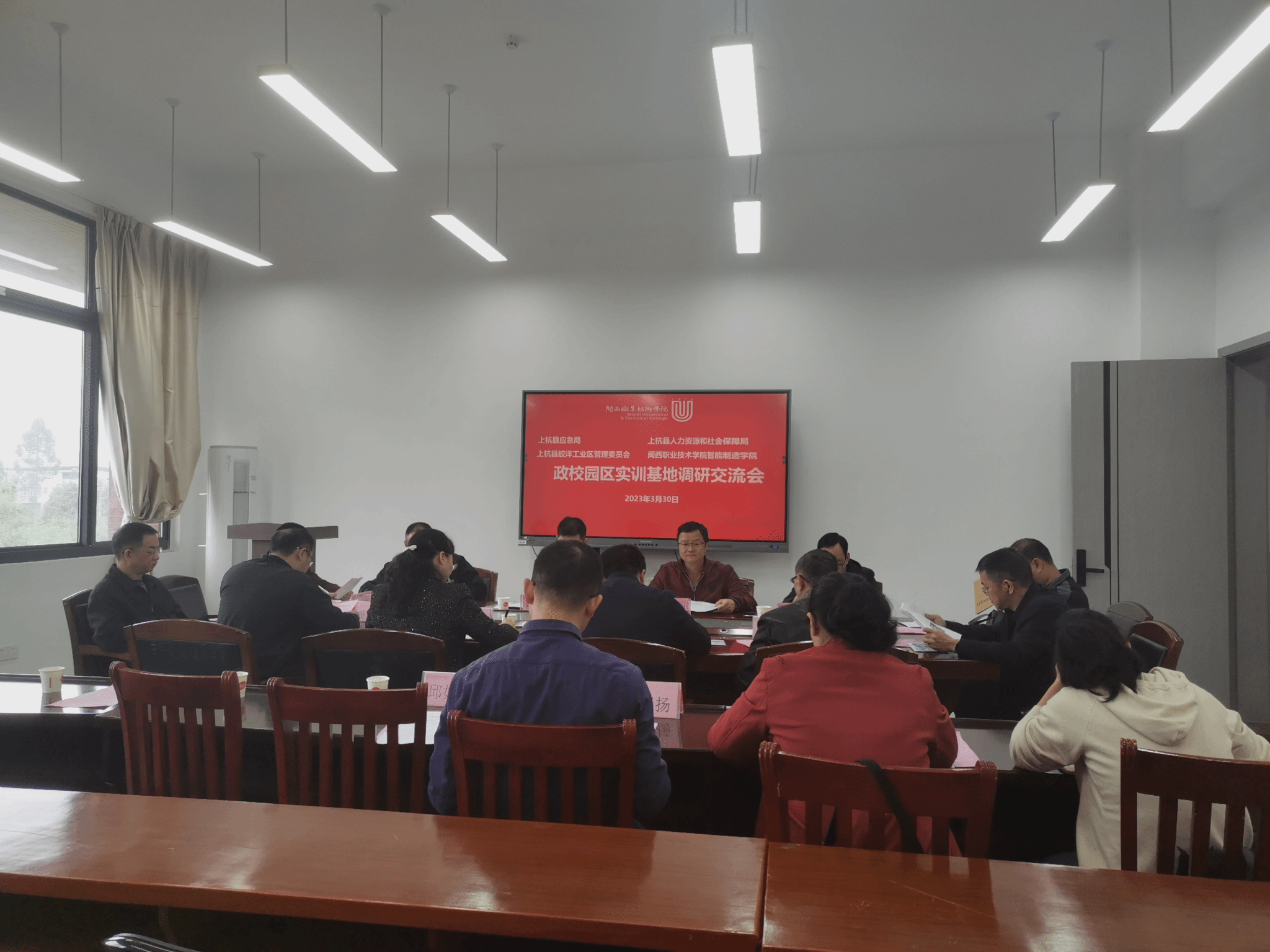 2023年3月30日,上杭县蛟洋工业区管理委员会副主任涂健顺、上杭县人社局人力资源公共服务中心主任丘凤初、副主任邱伟康、上杭应急局危化股股长刘汶溢、上杭应急局危化股干部刘志坚、上杭县蛟洋工业区管理委员会安环股干部黄素彬等一行8人来校调研座谈,双方就共建蛟洋工业区化工实训基地相关事宜进行了深入交流互动并达成了初步合作意向。智能制造学院、继续教育学院等相关部门负责人参加调研座谈。