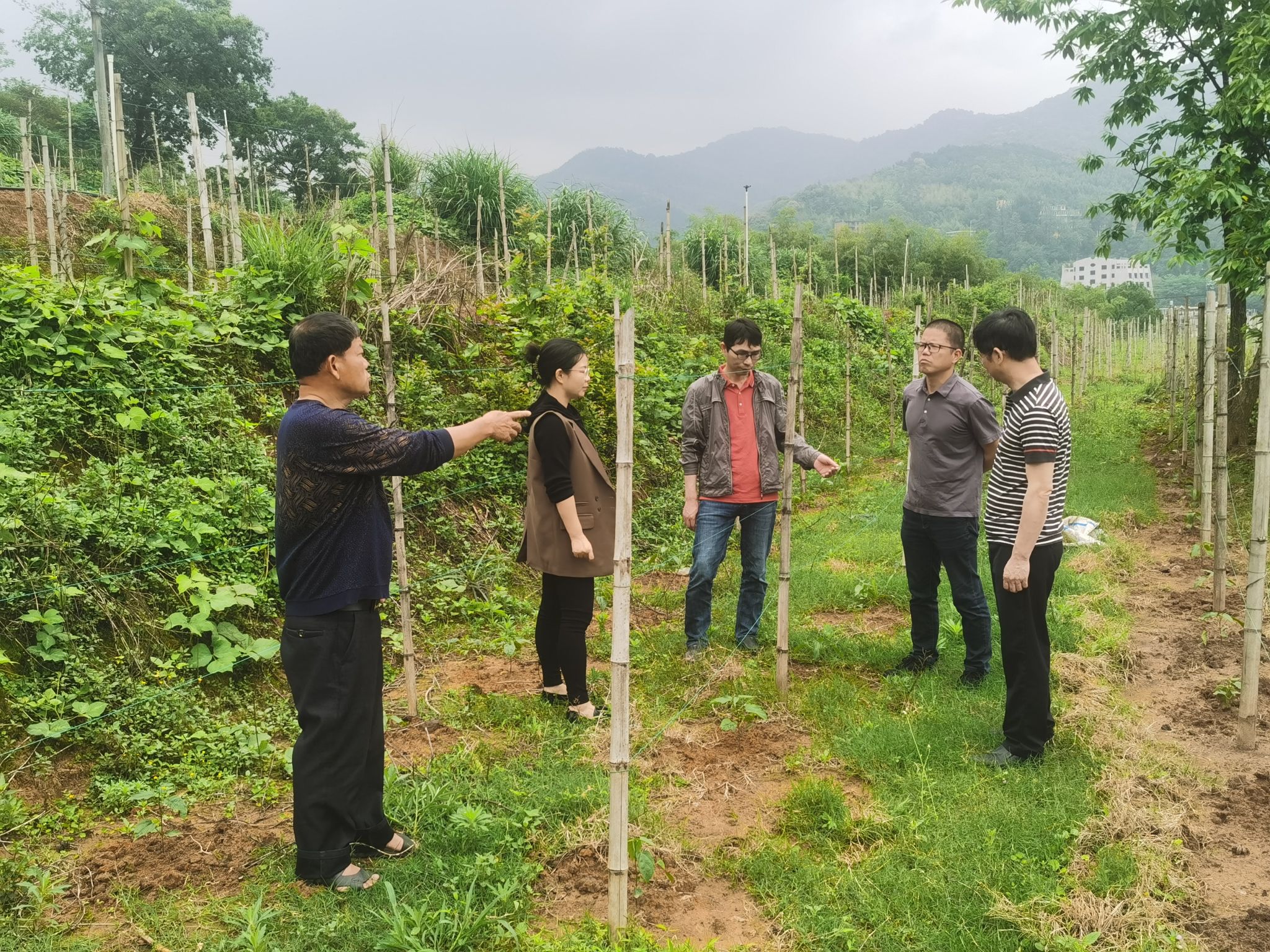 为深入学习贯彻习近平新时代中国特色社会主义思想,全面贯彻落实党的二十大精神,在全党大兴调查研究之际, 4月21日,MG冰球文化与旅游学院、闽西博恩乡村振兴技术应用研究教师团队深入新罗区雁石镇苏邦村开展乡村振兴调研工作。围绕“乡村要振兴,产业须先行”的重点问题,深入田间地头开展调查研究。教师团队在现场认真查看星油藤小苗种植长势情况,了解星油藤管理、经营以及产量效益等存在的问题,向种植户指导星油藤生态种植技术、过冬防冻对策、产品加工、IP包装、大数据营销、产业推广等事项,助力苏邦村探索打造一村一品“星油藤保健茶”特色产业,壮大农村集体经济,走一条集“首创、培育、种植、生产、研发和销售服务”为一体的高科技生态发展、农民就业致富之路。