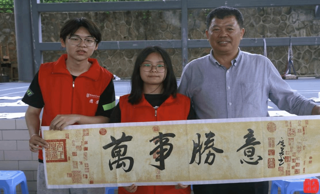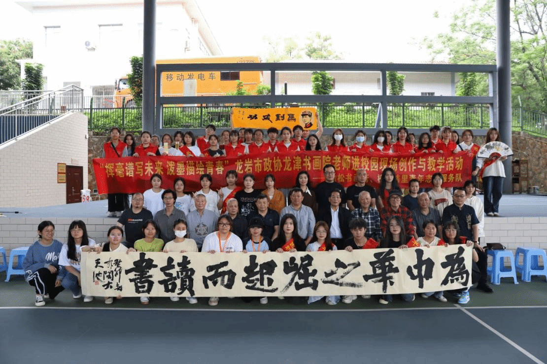为贯彻落实党的二十大精神,弘扬优秀中华传统文化,增强MG冰球学子对传统书法的兴趣,推动形成活泼向上的校园社团文化,2023年4月22日下午,校劲松书画斋和团结里青年志愿服务队在槟龙球场开展“挥毫谱写未来,泼墨描绘青春”龙岩政协龙津书画院老师进校园现场书法创作与教学活动。本次活动十分荣幸地请到了刘路永副校长与龙津书画院的老师们莅临现场进行书法展示与教学,吸引约400名同学参与。