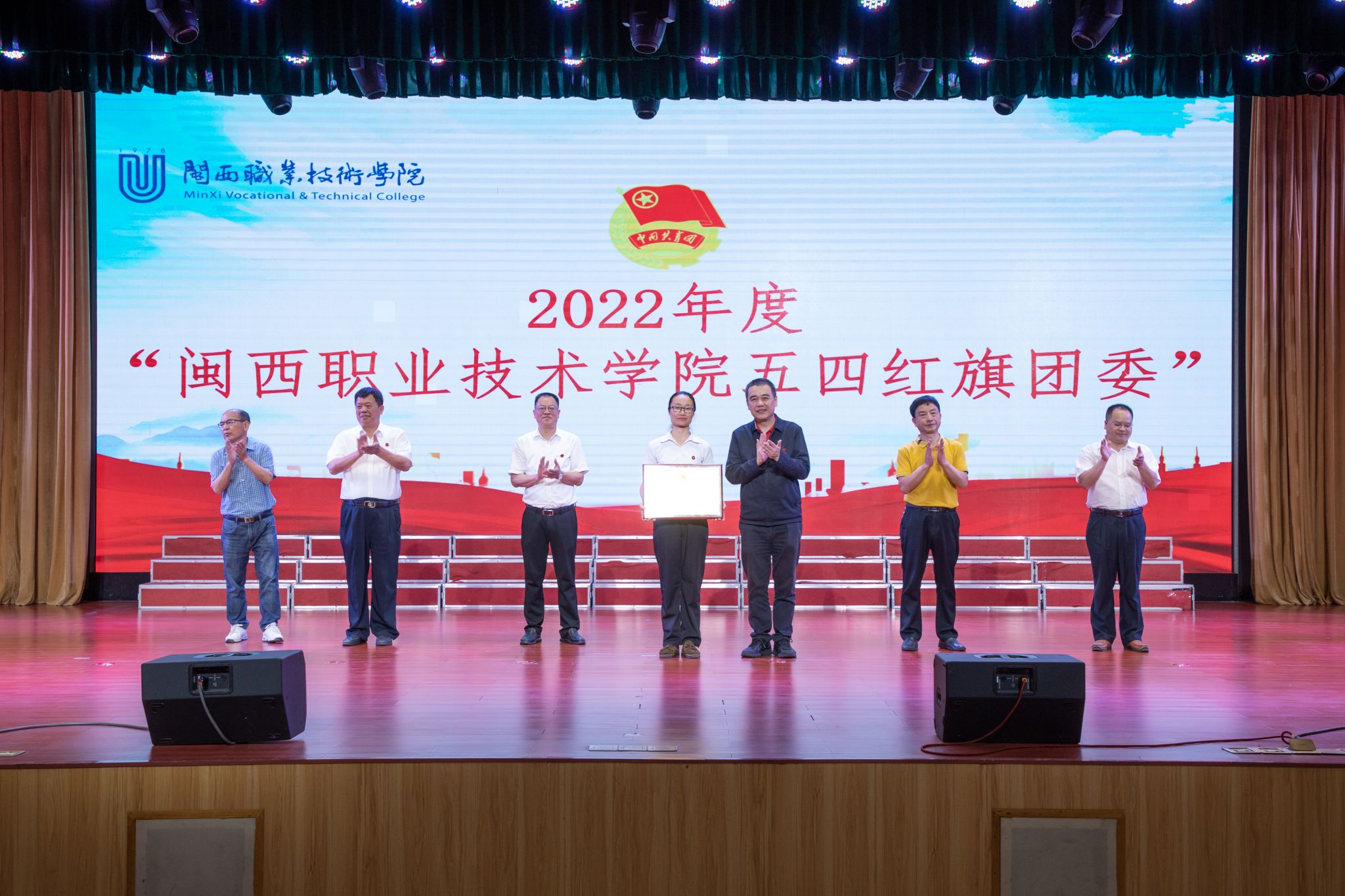 刘路永副校长宣读表彰决定,隆重表彰了获得国家奖学金,创新创业大赛金奖、银奖和铜奖,省、市、校级青年五四奖章、五四红旗团委、五四红旗团支部、优秀共青团员、优秀共青团干部等先进集体和个人。