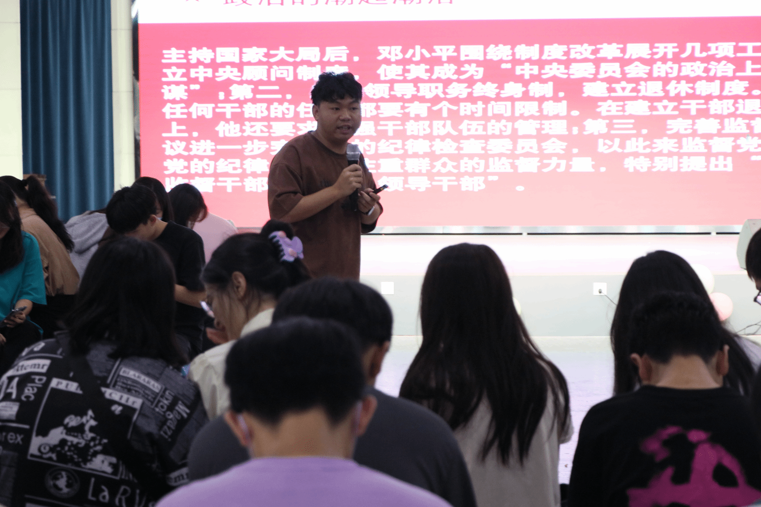 财经商贸学院团副张伟德分享了《邓小平时代》这本书。他从该书的开卷有益,以及三个转折点-恢复高考、政治的潮起潮落、个人感想等四个方面进行分享。他说,这本书让他领略了邓公跌宕起伏的人生经历,品味了过去四十余年风云巨变、万物激荡的改革岁月,时至今日,延至将来,这依然是影响中国最深远的一道镌刻。