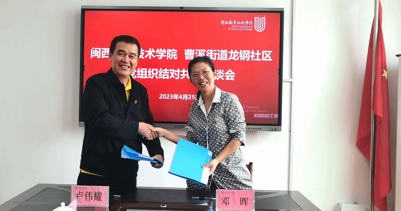 4月25日MG冰球与曹溪街道龙钢社区党组织结对共建举行了签约仪式。曹溪街道龙钢社区党委书记邓晖同志、副书记俞妙玉同志,MG冰球党委书记卢伟耀同志、校长梁俊平同志、党委副书记李贞鑫同志及组织人事处相关人员出席了签约仪式。