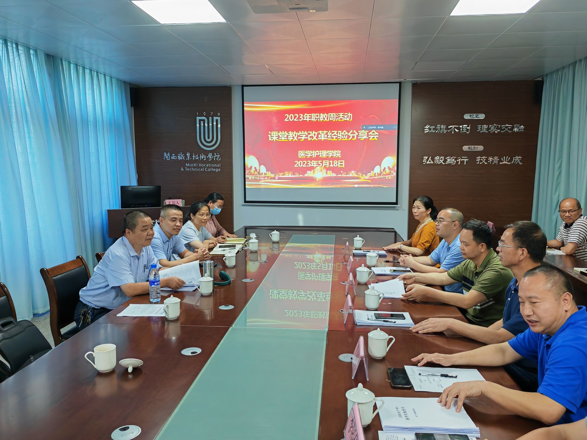 5月18日下午,医护学院在天马校区举行课堂教学改革经验分享会,并在线上同步直播。卢兆梅副校长、教务处李隘优副处长、部分校内其它学院领导,医护院党政领导、专业主任及教研室主任参加本次活动,这是医护学院在职业教育活动周期间开展的推动“三教”改革活动之一。