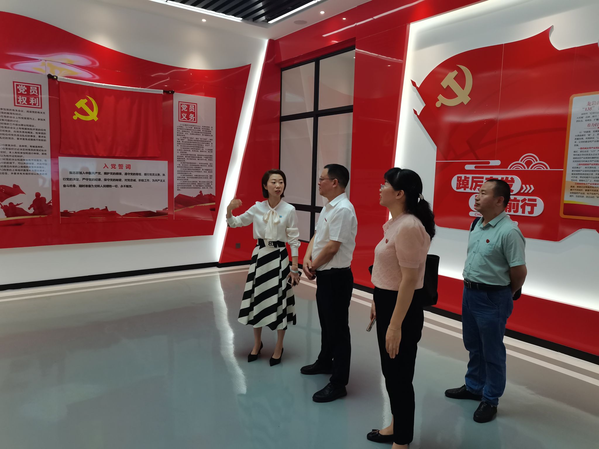 在龙合智能,调研组一行参观了龙合智能数字化文化展厅及生产车间,详细了解了公司发展历程、生产工艺、5G+工业信息化发展及自主研发生产的灵空、幻影、极速、劲驰四大智能无人装卸设备和系统集成产品等,看望了学校在龙合智能工作的毕业生。校企双方就校企合作、学生就业、人才培养模式改革等方面进行交流探讨。龙合智能公司董事长杨静陪同调研。