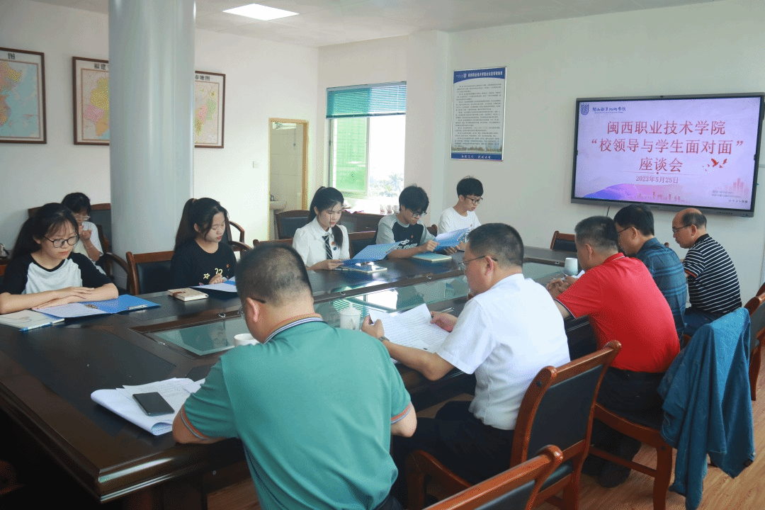 为深入了解MG冰球学生学习、生活、就业等方面情况,倾听学生对学校发展的意见与建议,提升学校治理水平。2023年5月25日上午,MG冰球领导与学生代表在协成楼六楼会议室开展了面对面座谈会,校党委卢伟耀书记、梁俊平校长、校党委李贞鑫副书记、卢兆梅副校长、校纪委温献荣书记、校团委老师及7名学生代表参加本次座谈会。