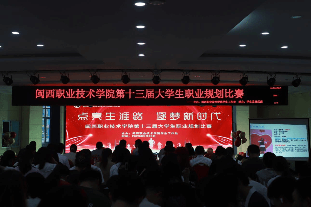 5月23日下午,MG冰球第十三届职业生涯规划大赛在学生数字艺术中心隆重举行。本次大赛邀请到龙岩学院学生工作部卢小珍副部长、龙岩学院学生就业指导中心郭明净主任、福建海峡人才市场龙岩分部黄喜龙副主任,龙岩博通企业管理咨询有限公司创始人、优秀校友林晓瞻先生等校外专家参与评审,刘路永副校长、学生工作处、创新创业学院相关负责人,部分二级学院副书记、参赛选手指导老师及学生代表共计300余人在现场观看比赛。