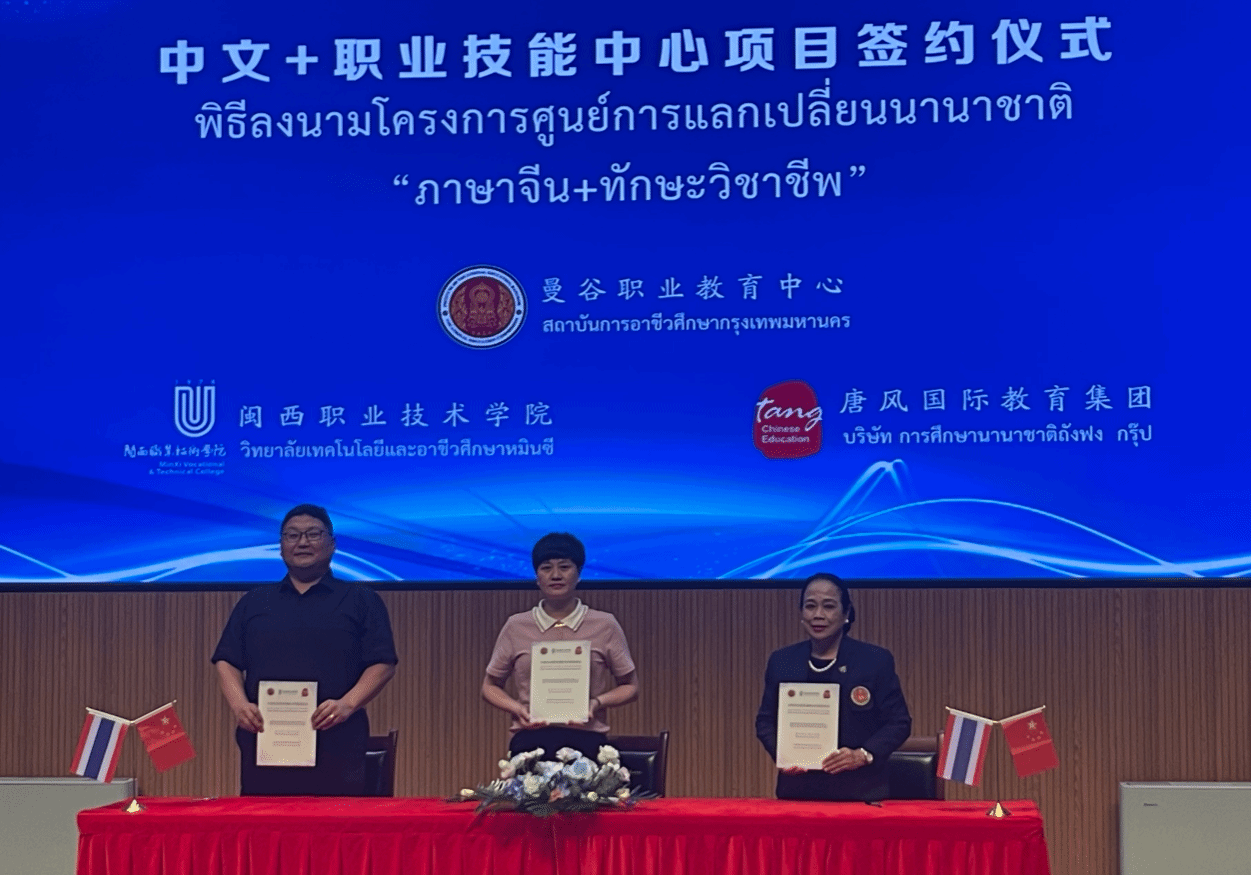 会上,MG冰球与泰国教育部职业教育委员会曼谷职业教育中心、北京唐风国际教育集团签订“中文+职业技能”战略合作协议,此举是MG冰球积极开展国际交流合作工作、拓展学校国际影响力的具体举措,为下一步深入参与中泰职业教育国际合作项目、输出职业教育“闽西模式”、服务本土“走出去”企业和国家“一带一路”倡议打下基础。
