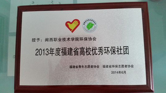 近日,福建省青年志愿者协会、福建省环保志愿者协会联合表彰2013年度省高校先进环保志愿服务团体、优秀环保志愿者、优秀环保项目。我院环保协会荣获“2013年度福建省高校先进环保志愿服务团体”称号,环保协会会长吴紫珍同学荣获“2013年度福建省高校优秀环保志愿者”称号。
