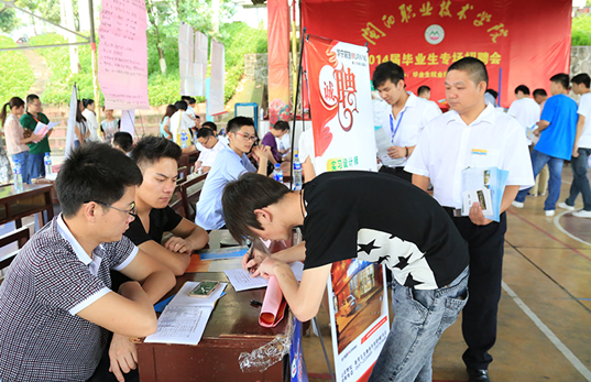 在招聘会上,学生记者从就业指导中心了解到,我院五项举措促进2014届毕业生就业。一是落实“一把手”责任制。院、系党政领导作为院系就业工作的第一负责人,主抓毕业生就业工作。下发2014就业工作专项检查的通知,把毕业生就业工作与评优、评先挂钩。二是大力开拓就业市场。采取“走出去、请进来”的方式,大力开拓就业市场,利用各种媒体发布需要信息,举办多层次的就业招聘会。截至目前,共举办2场大型就业招聘会,30余场专场招聘会,先后有近300家用人单位来校招聘毕业生,为毕业生提供就业岗位7000余个。三是切实加强对就业困难群体的帮扶工作。针对就业困难群体实行“一对一”就业帮扶,对“双困”毕业生每人提供300元的求职交通补助,尽量让每一个学生能就业、就好业。四是大力开展创业培训工作,促进毕业生自主创业。学院大力开展创业培训,积极推进“十百千”创业教育工程,引导和鼓励毕业生自主创业,以创业促进就业。五是积极鼓励毕业生参加专升本和服务基层项目。今年共有116人被本科院校录取,2名同学参加“志愿服务欠发达地区”计划。