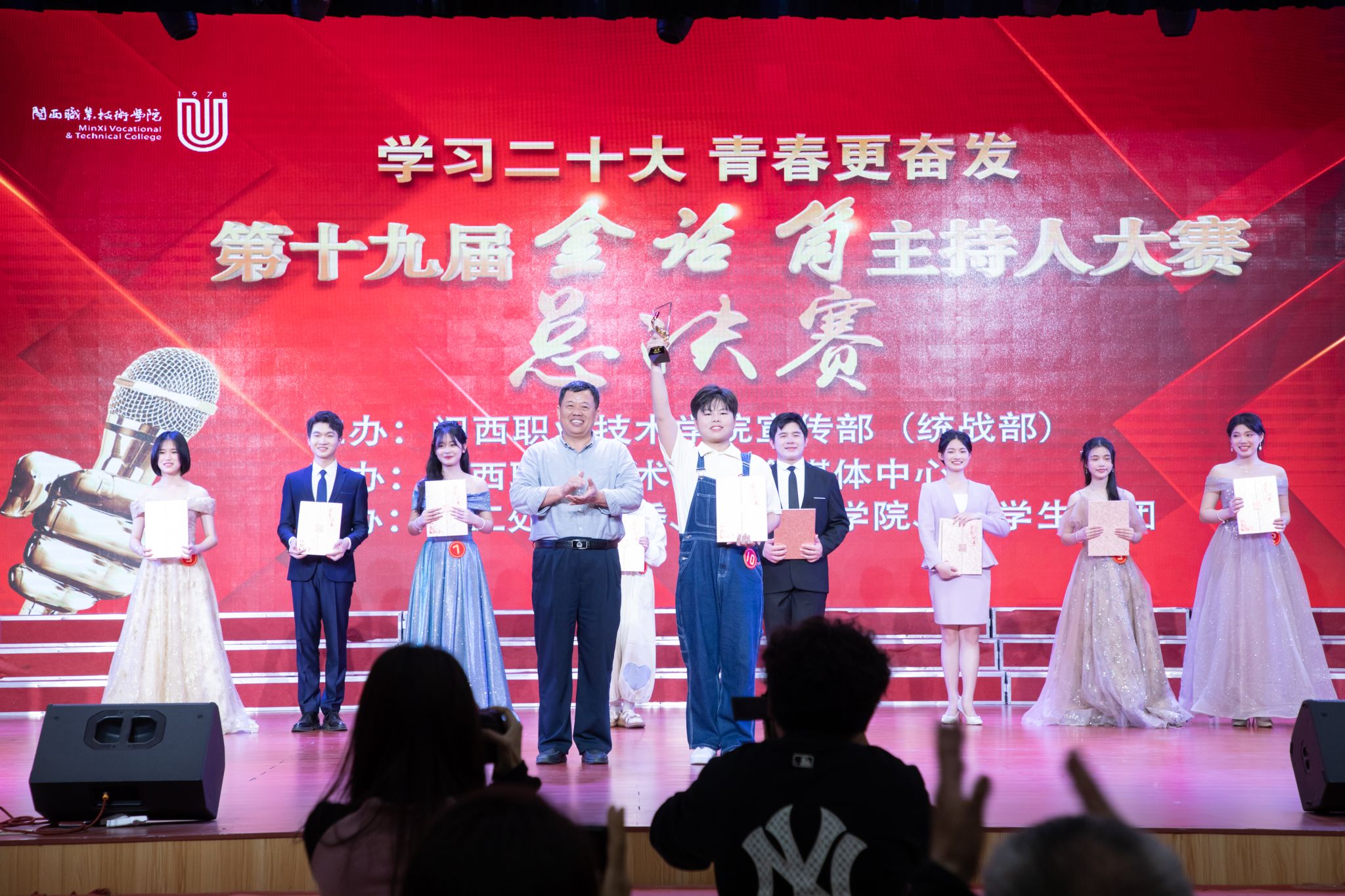 为挖掘、培养一批主持人才,彰显新时代青年力量。以“学习党的二十大,青春更奋发”为主题的第十九届“金话筒”主持人大赛总决赛于2023年3月18日晚在大匠堂举行隆重举行。校党委书记卢伟耀、副校长刘路永、宣传部(统战部)负责人、学工处负责人、校团委负责人,全媒体中心及学校各社团组织等近600人参加。